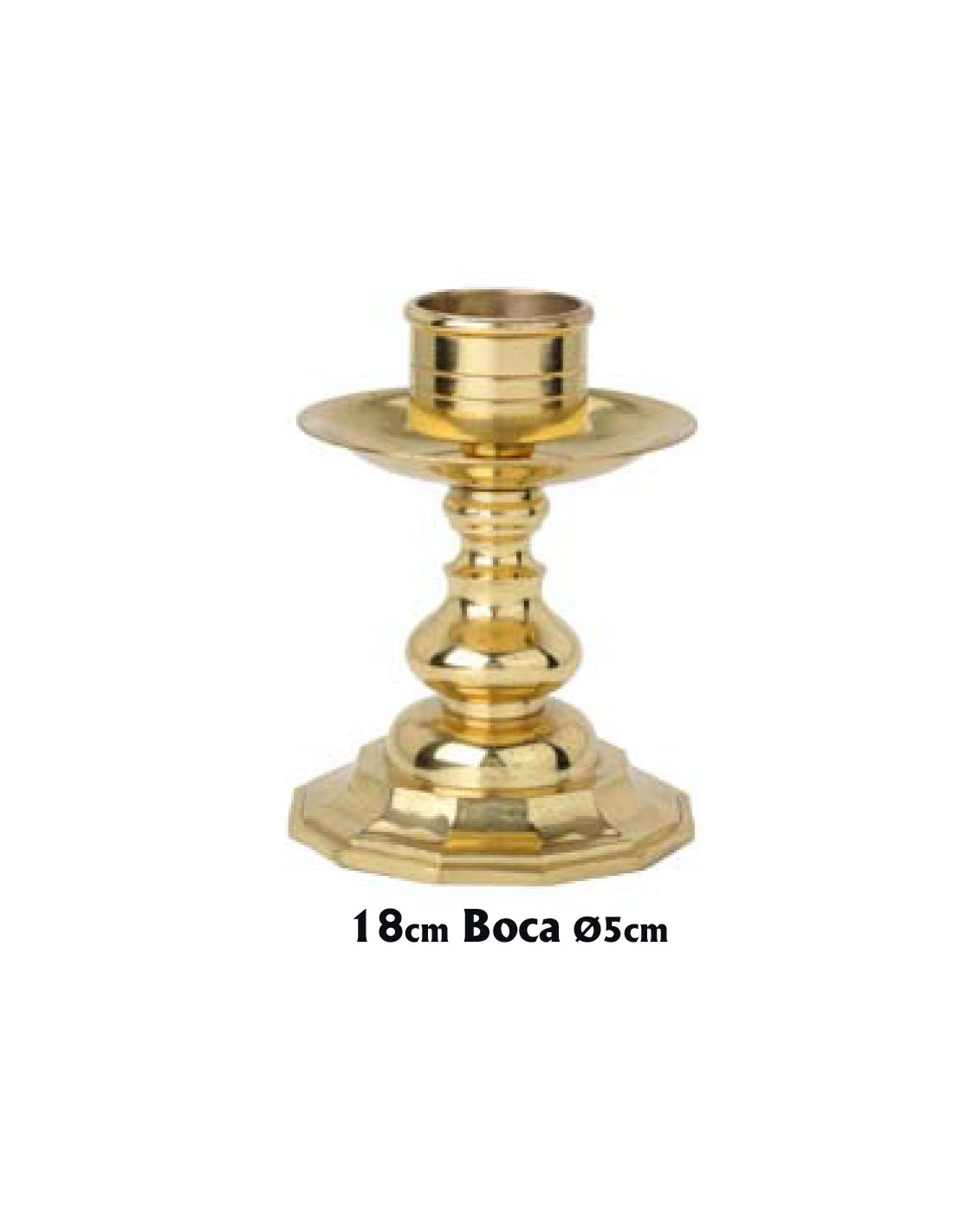 Candelabro Bronce 18cm Pie Redondo Con Aristas Y Varios Nudos Lisos