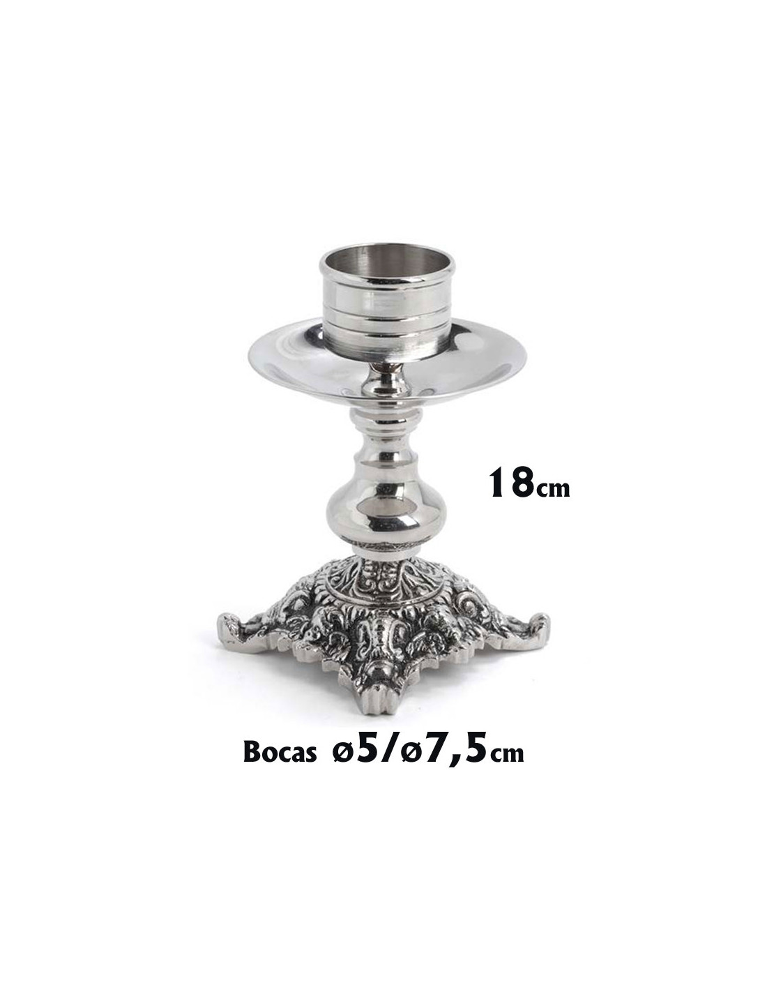 Candelero Mesa Pie Cuadrado Nudo Liso 18cm Alto Plateado