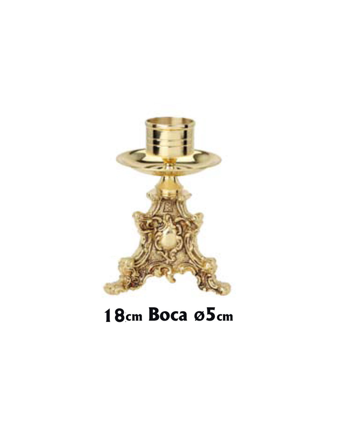 Candelabro Bronce 18Cm Triangular Pie Labrado Con Medallon Liso Al Centro