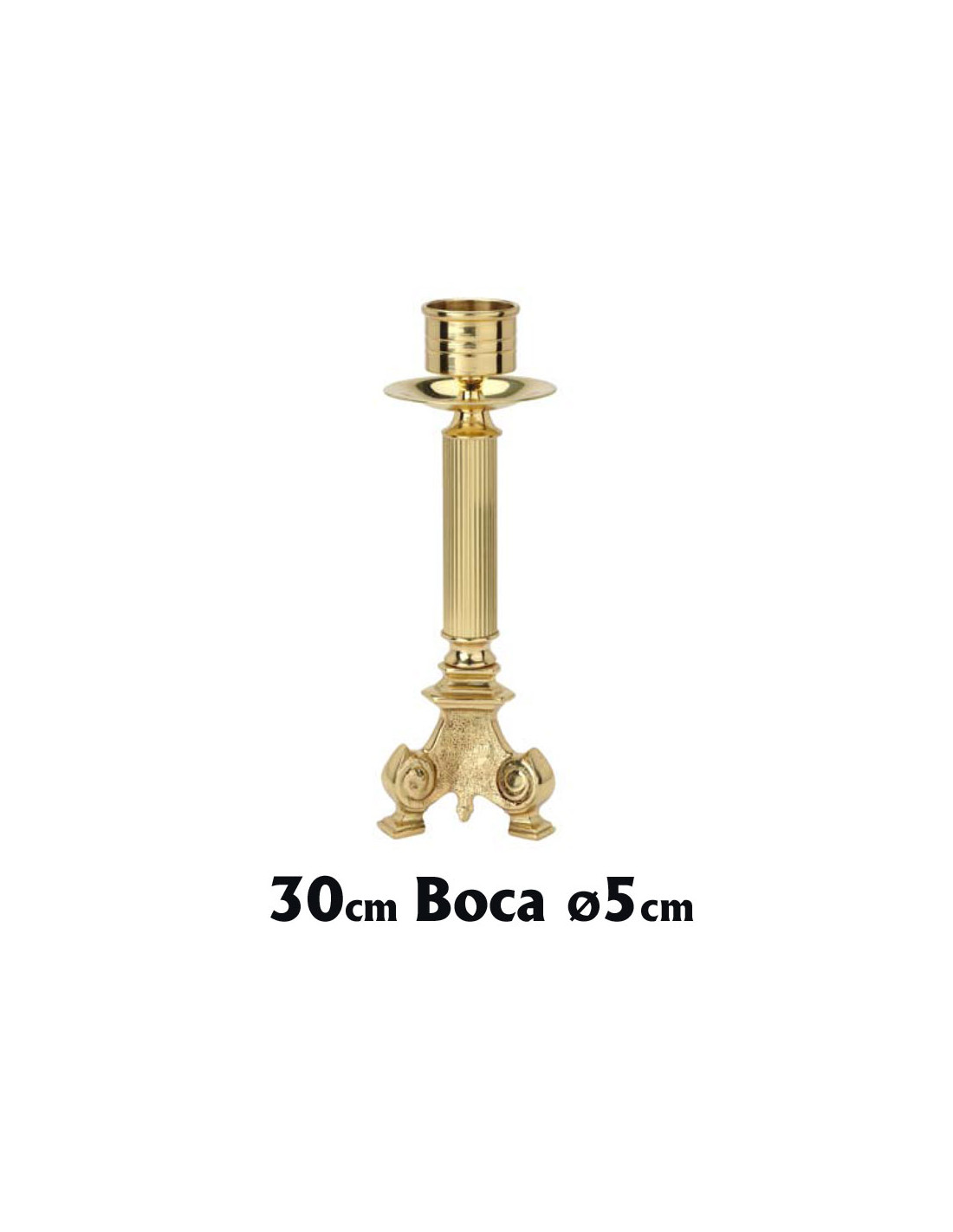 Candelabro Bronce 30Cm Pie Triangular Martilleado Tubo Rayado