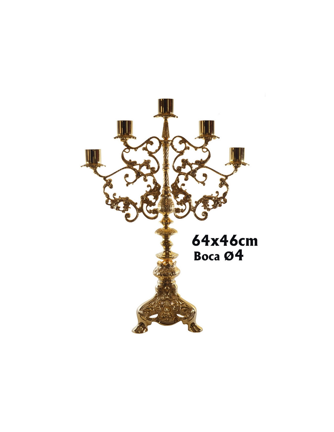 Candelabro Altar 5 Velas 65 X 46 Base Triangular Baño Oro 24K