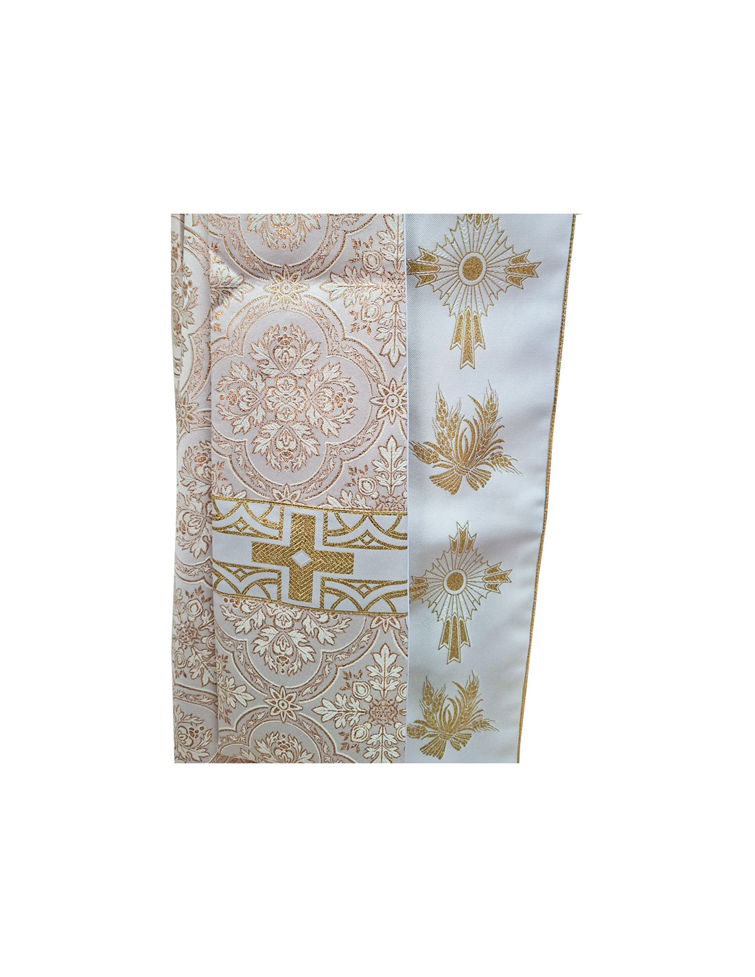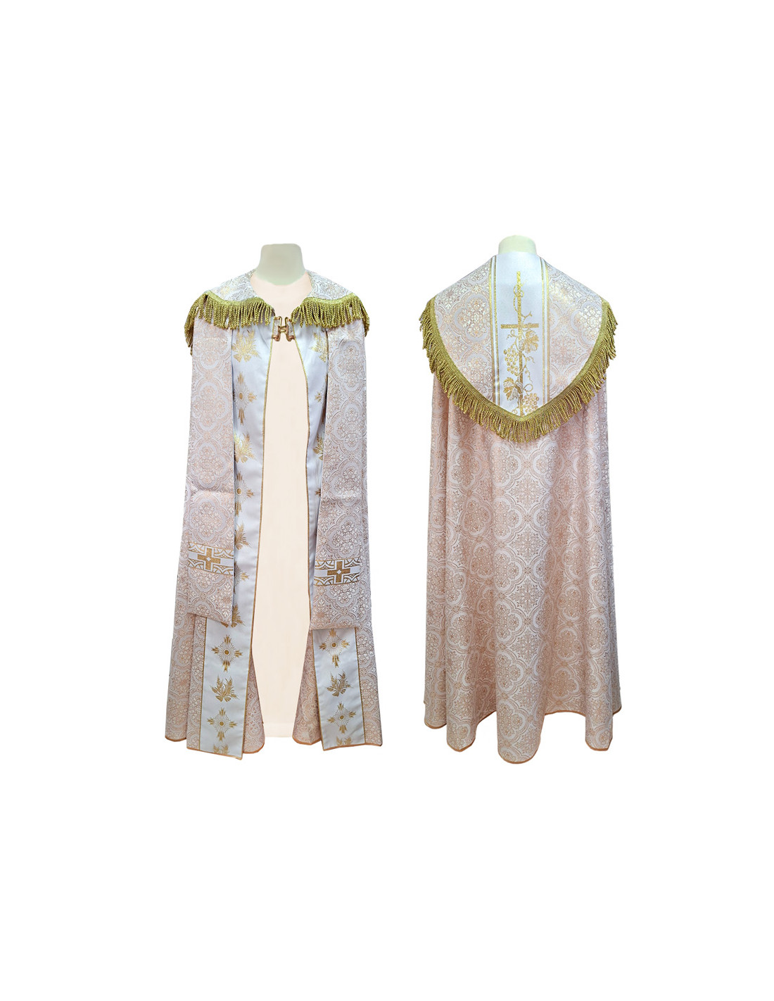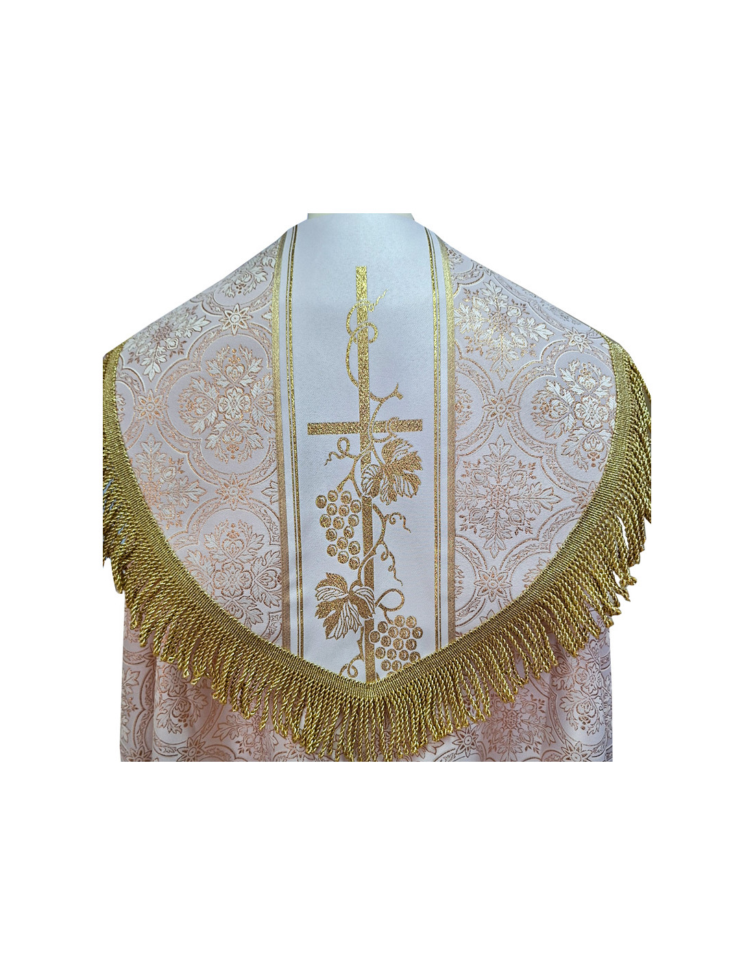 Capa Pluvial Blanca Estampada Tipo Damasco Cruces Y Cruz Con Uvas Detras N444 Con Estola
