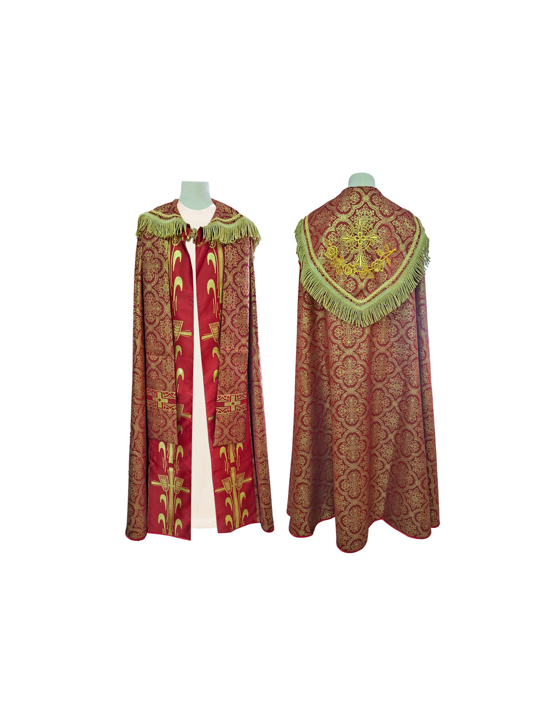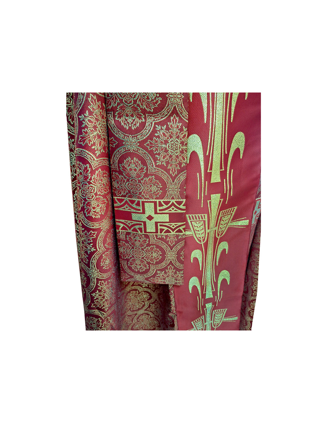 Capa Pluvial Estampada Roja Tipo Damasco Espigas Y Cruz Rosas Bordadas Detras N441 Con Estola