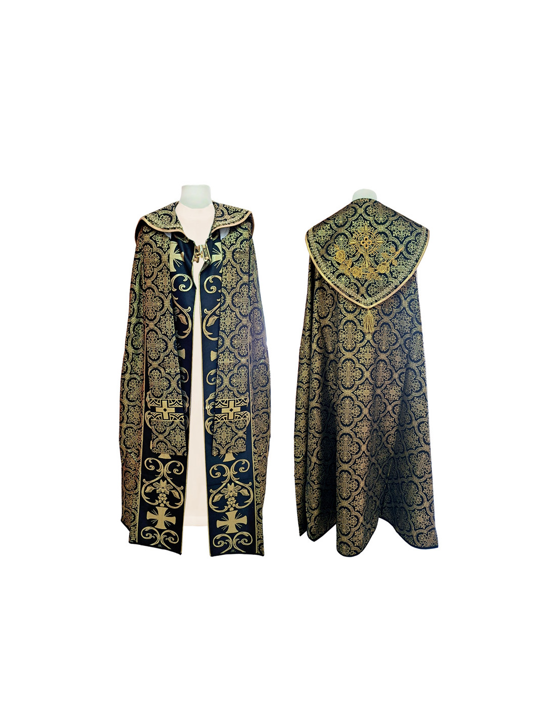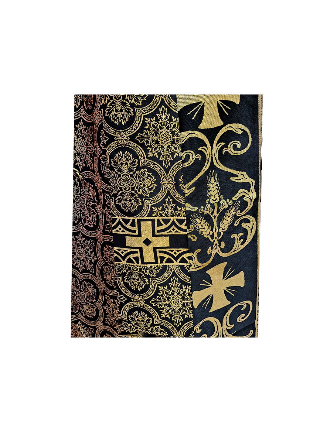 Capa Pluvial Estampada Negra Tipo Damasco Espigas Y Cruz Rosas Bordadas Detras N441