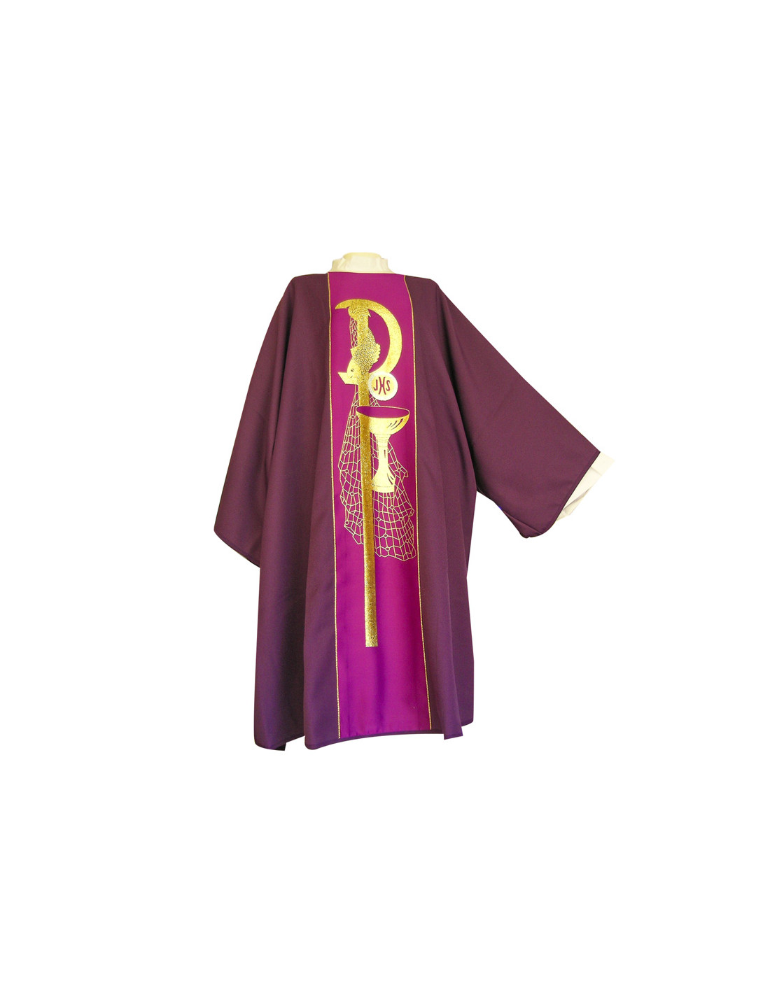 Dalmatica Morada Estampada Con Galon Pax Caliz Forma Y Una Red De Fondo