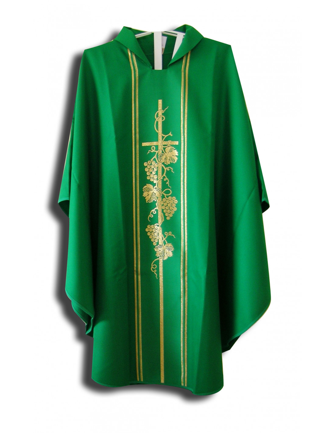 Casulla Estampada Con Galon Cruz Larga Con Racimos N354 Verde