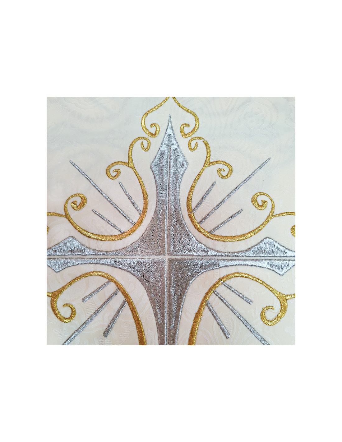 Casulla Adamascada Bordada Cruz Grande Con Dorada Alrededor