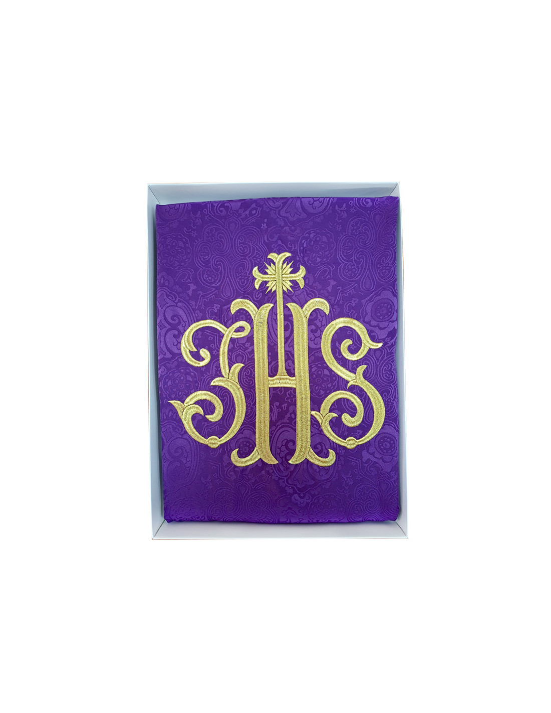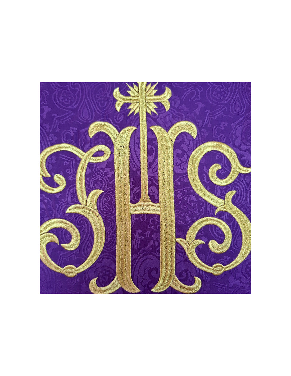 Casulla Adamascada Bordada Jhs Morada