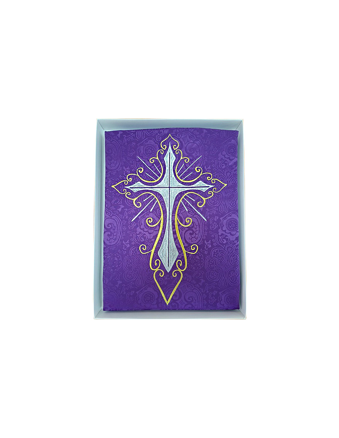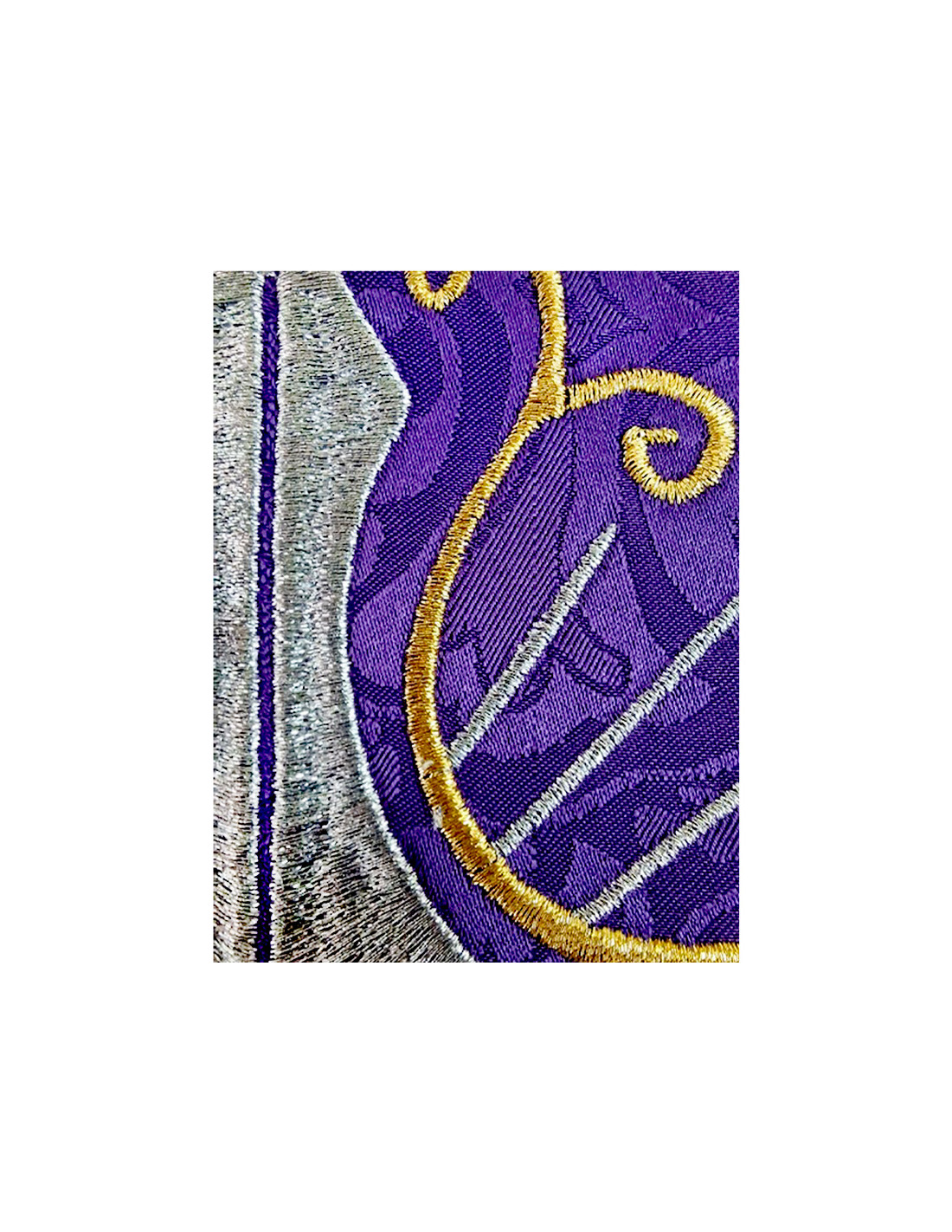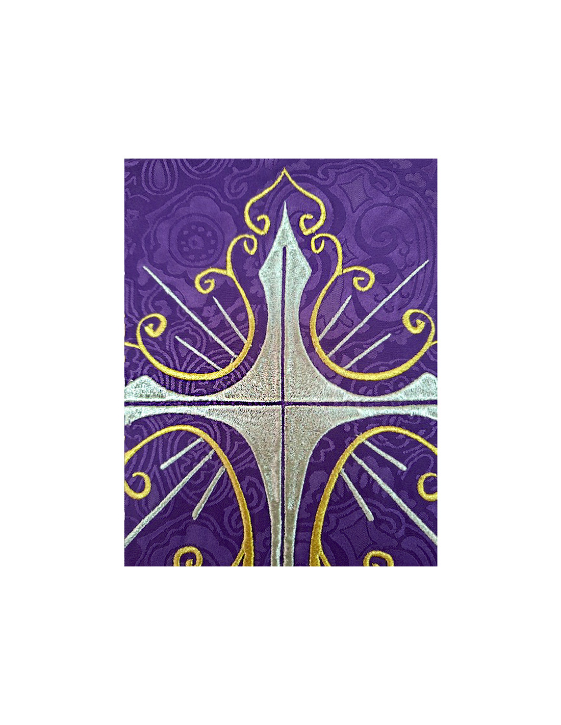 Casulla Adamascada Bordada Cruz Grande Morada Con Dorada Alrededor