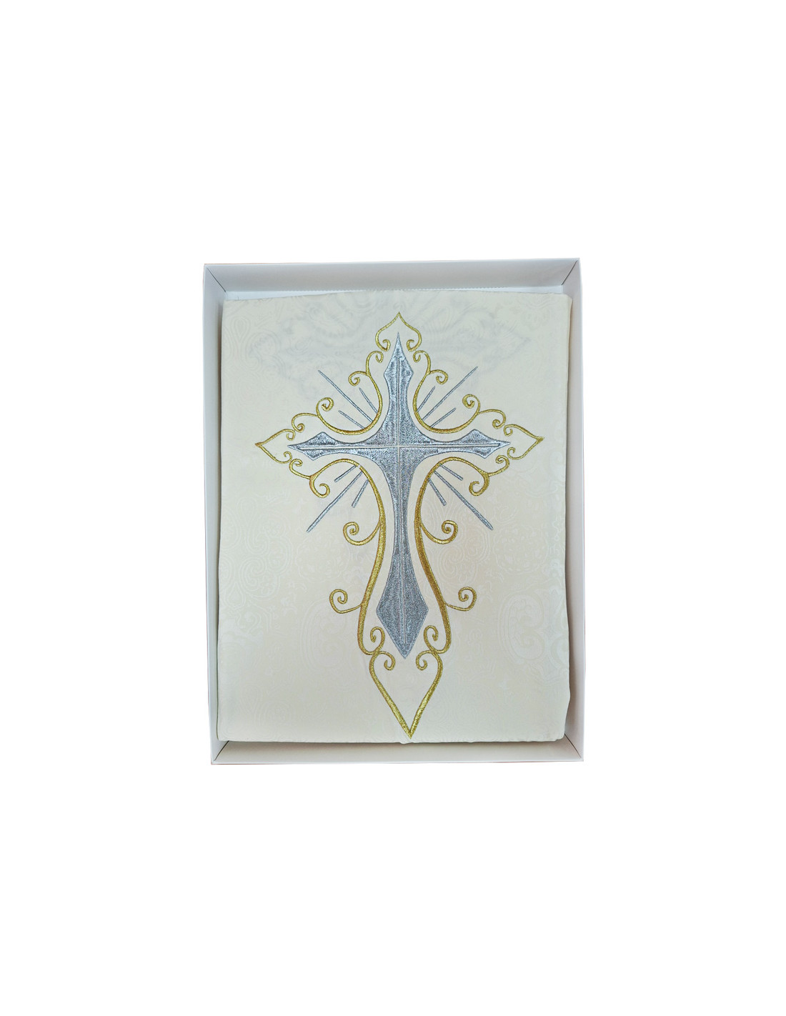 Casulla Adamascada Bordada Cruz Grande Con Dorada Alrededor