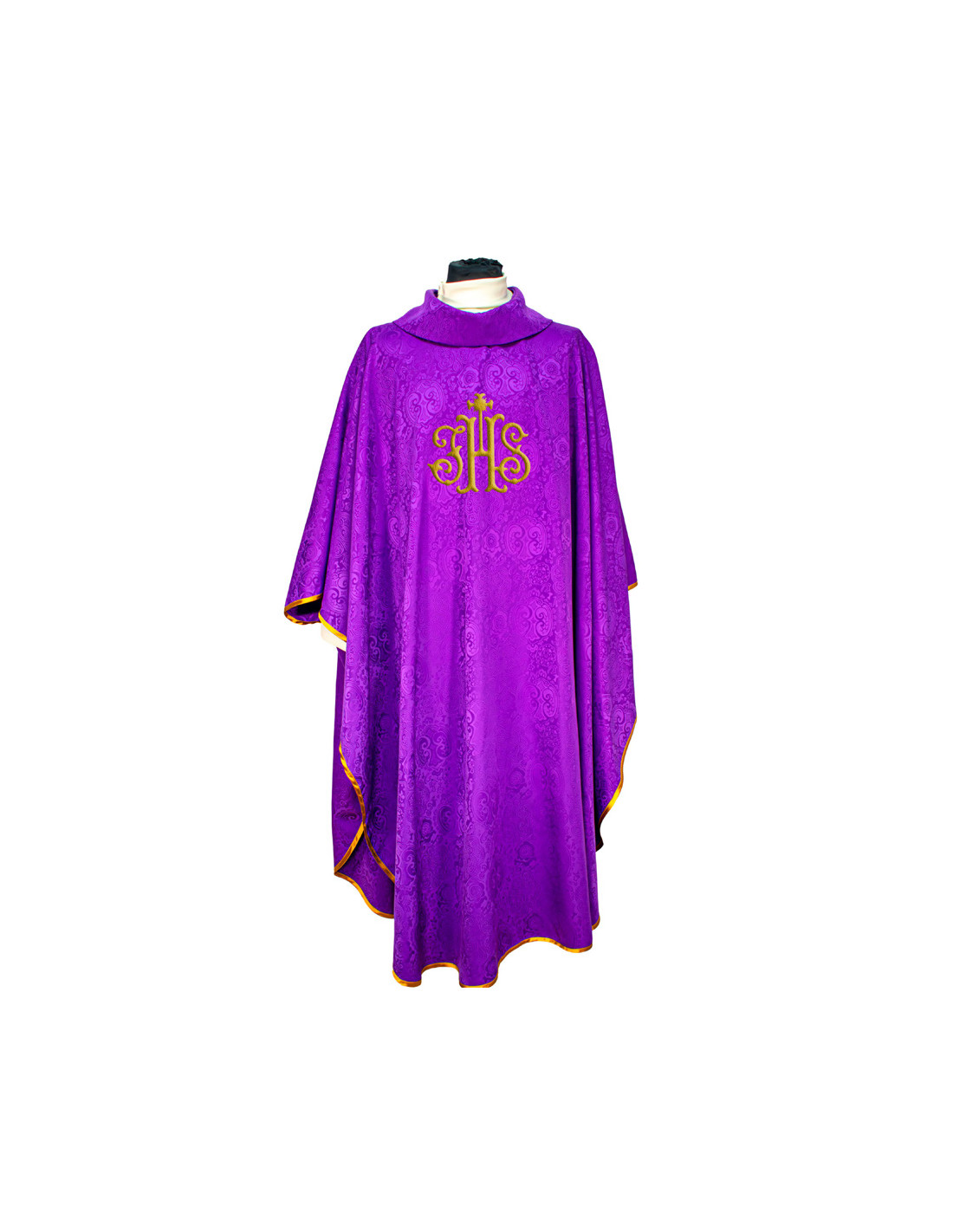 Casulla Adamascada Bordada Jhs Morada