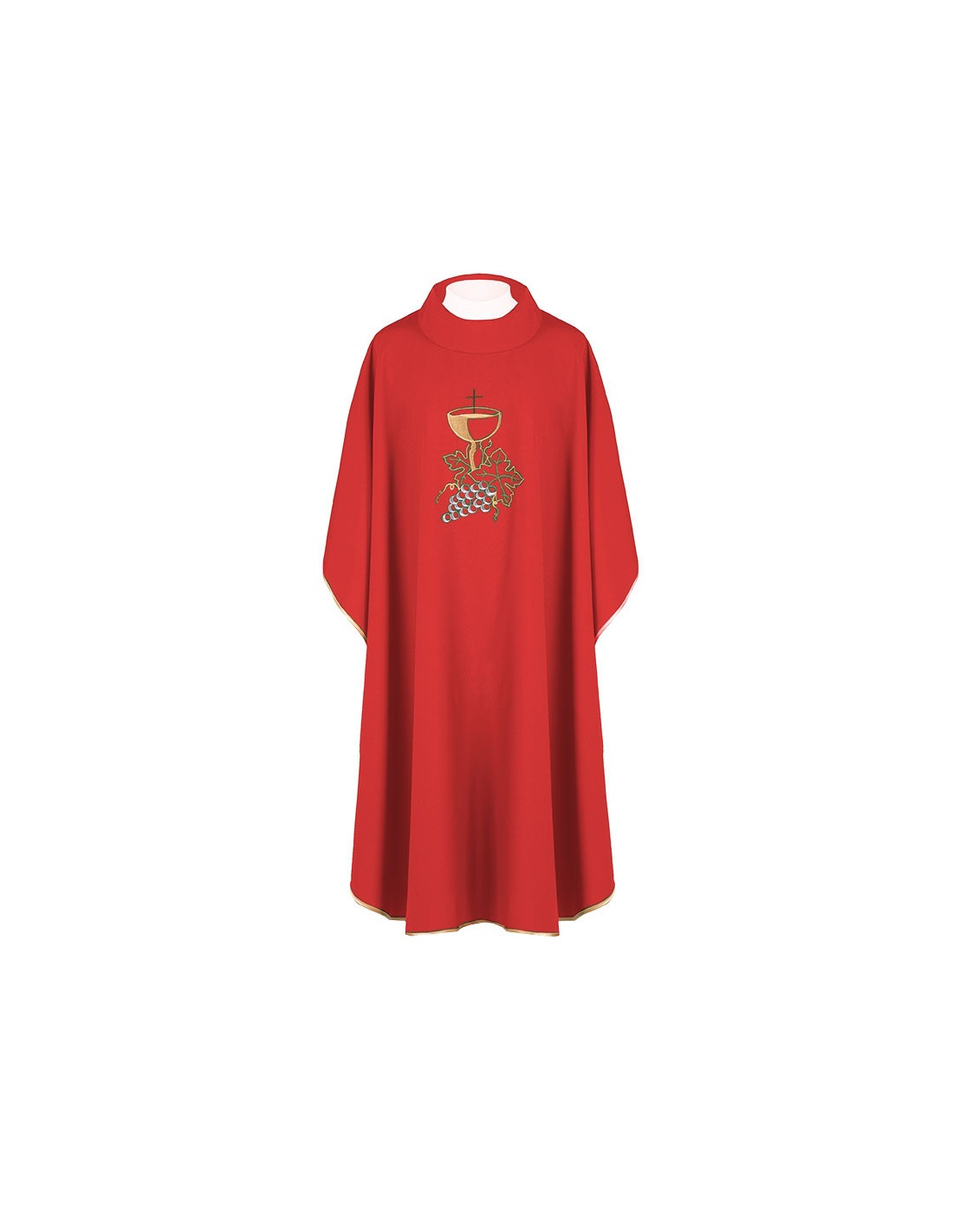 Casulla Bordada Caliz Con Hojas De Parra Kor/208 Roja Cuello Redondo