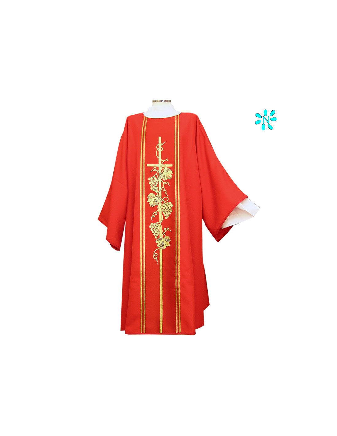 Dalmatica Estampada Con Galon Cruz Larga Con Racimos Roja