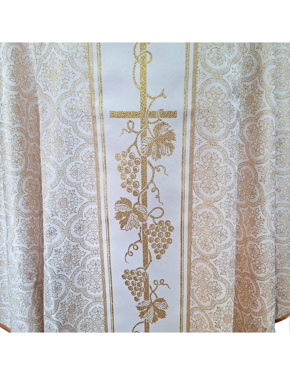 Casulla Estampada Tipo Damasco Con Galon Cruz Larga Racimos Uvas N381