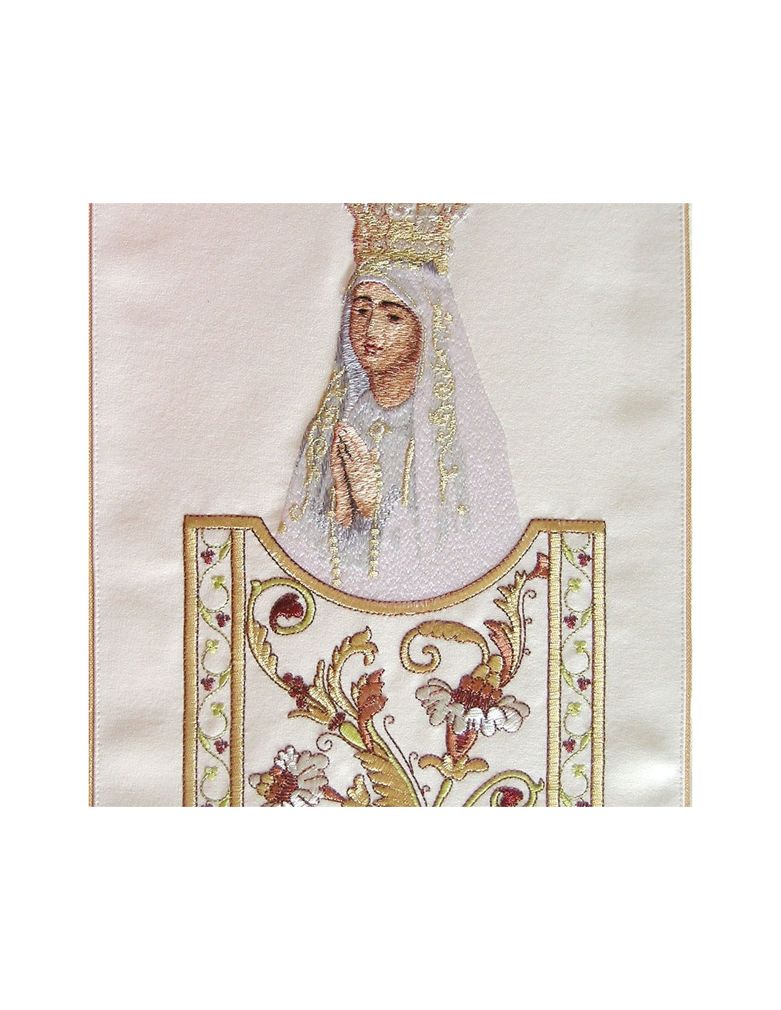 Casulla Virgen Fatima Bordada Kzo/170 Con Galon Rectangular Adorno Floral