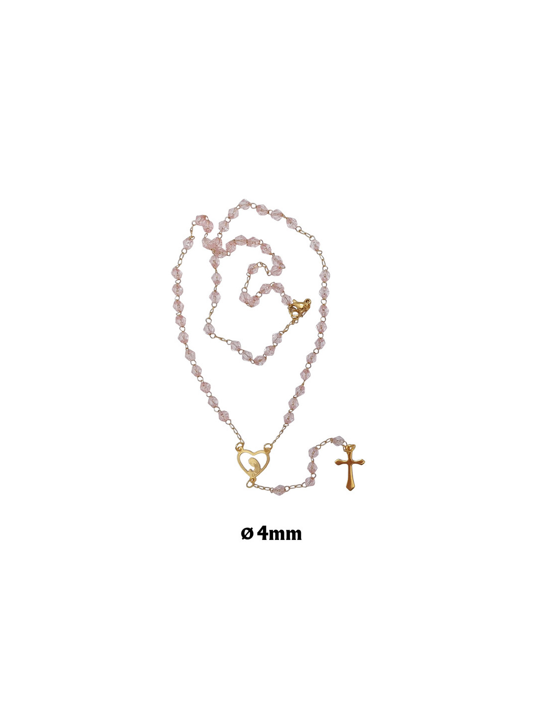 Rosario Acero Inox Con Cristal Rombo Rosa Y Maria Forma Corazon Con Virgen
