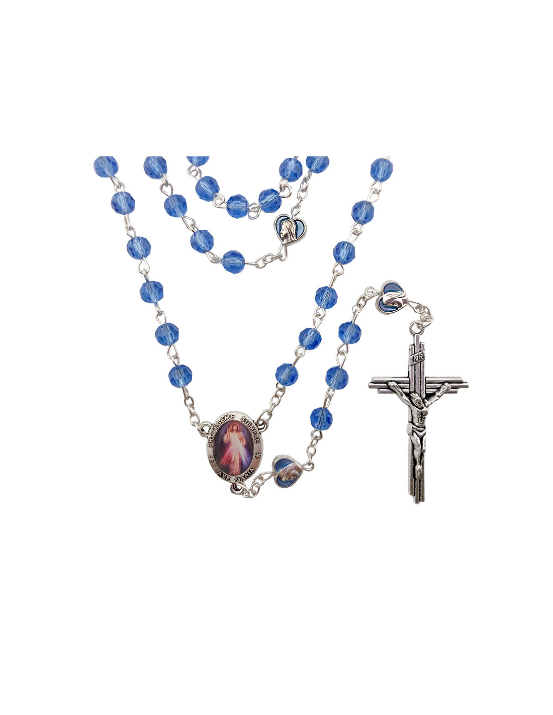 Rosario Cristal Azul 6mm Tallado Con Paters Corazon Esmaltados