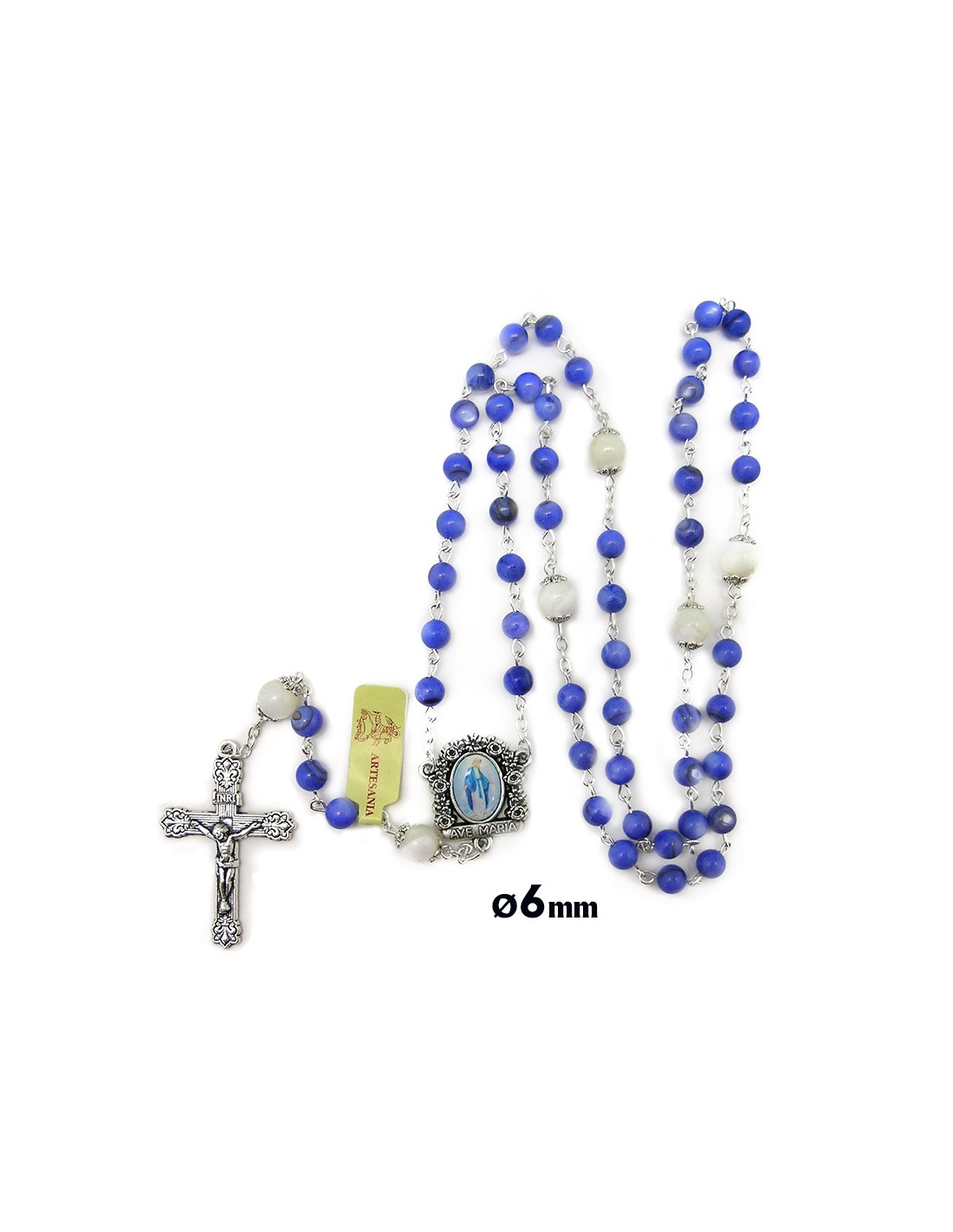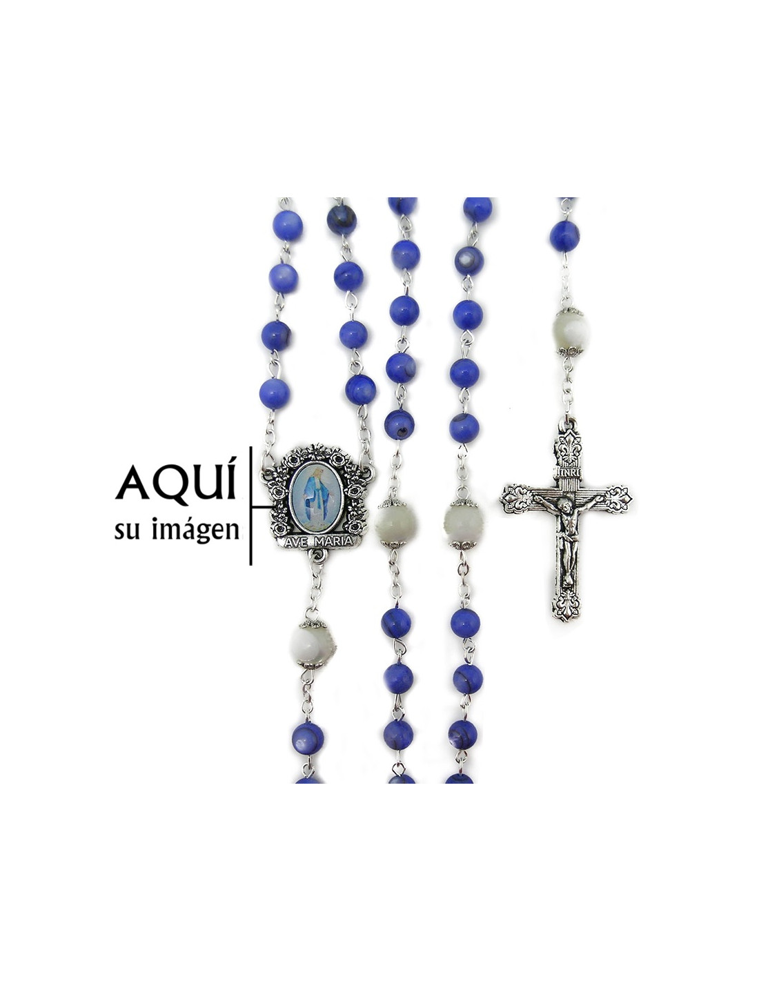 Rosario Cristal Perla Azul 6mm Paters Nacar Liso 8mm Con Copetas