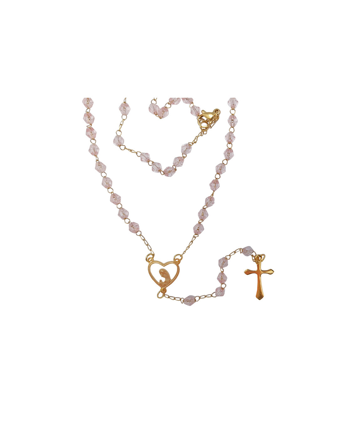 Rosario Acero Inox Con Cristal Rombo Rosa Y Maria Forma Corazon Con Virgen