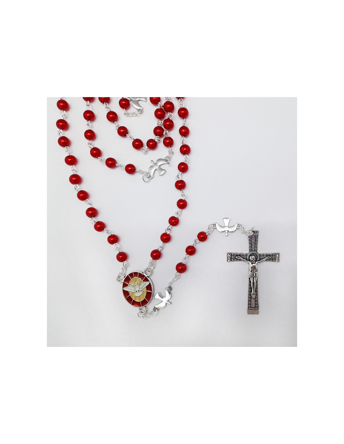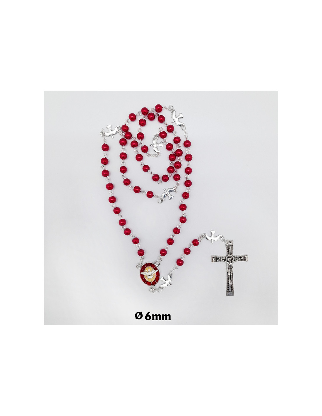 Rosario Cristal Liso Rojo Espiritu Santo 6mm Paters Paloma Y Maria Esmaltada Vaticana