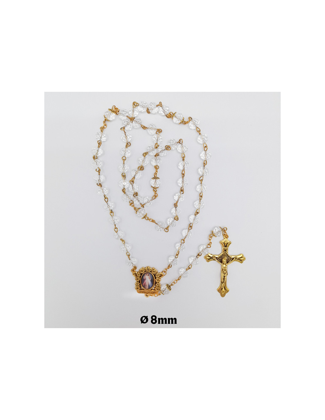 Rosario Cristal Tallado 8x6mm Trasparente Cadena Y Montura Dorado Envejecido