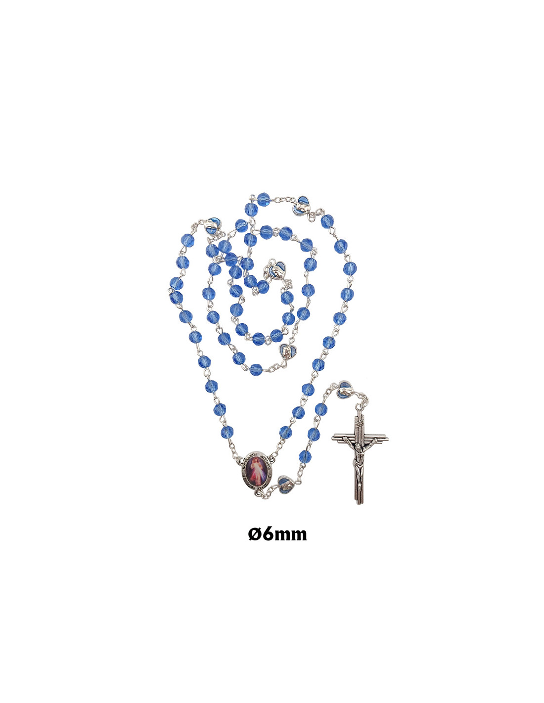 Rosario Cristal Azul 6mm Tallado Con Paters Corazon Esmaltados