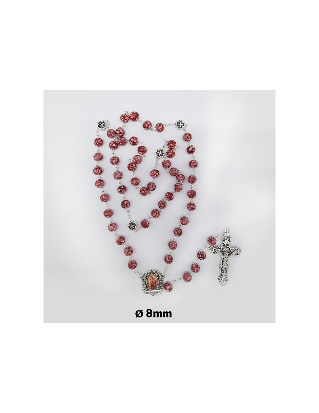 Rosario Cristal 8mm Rojo Con Blanco Estilo Marmol Y Cruz Metal Paters