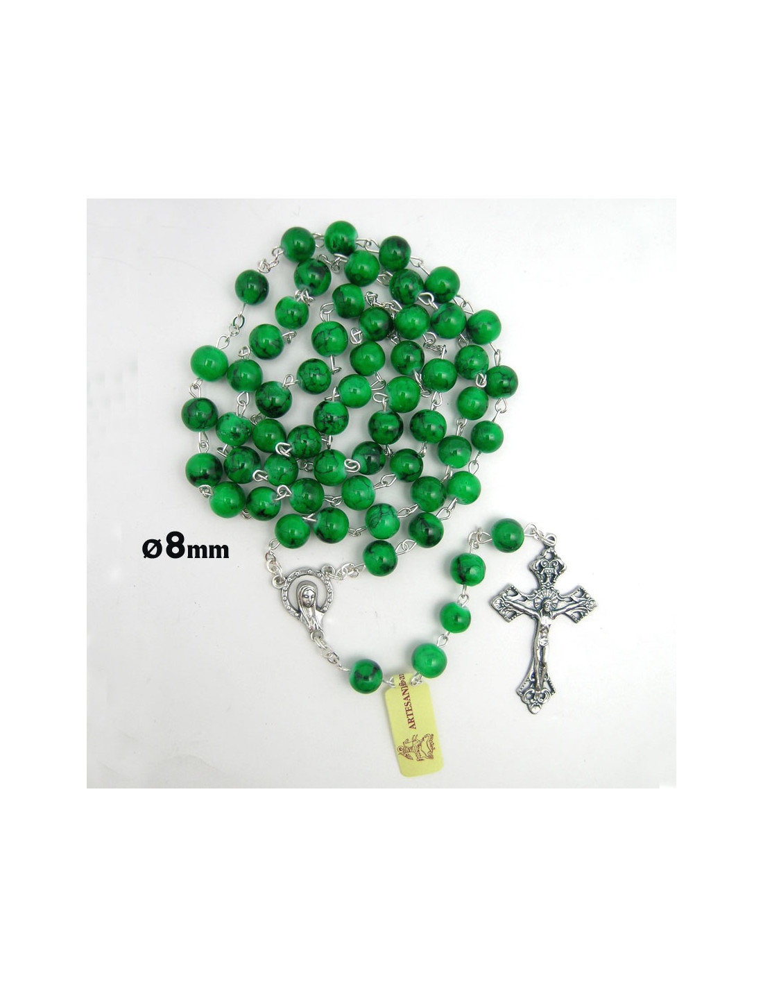 Rosario Cristal Liso 8mm Estampado Verde