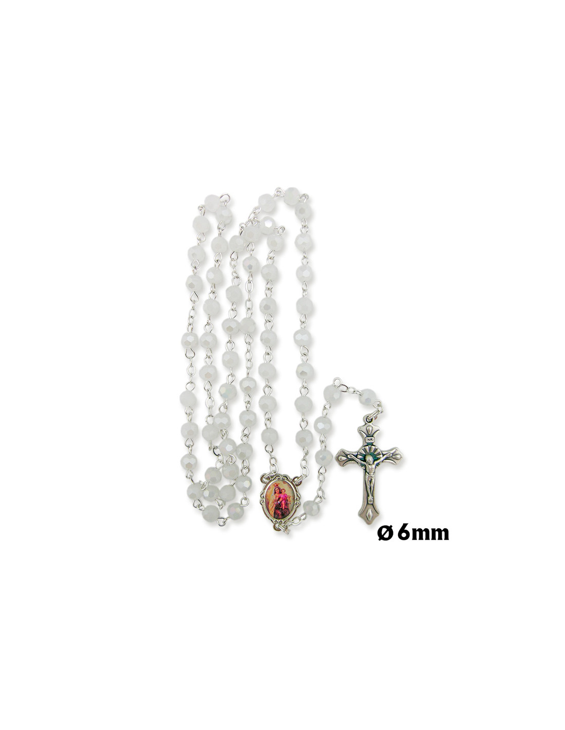 Rosario Cristal Tallado 6mm Blanco