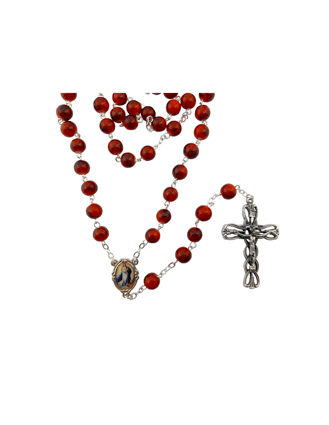 Rosario Cristal Liso 8Mm Estampado Rojo