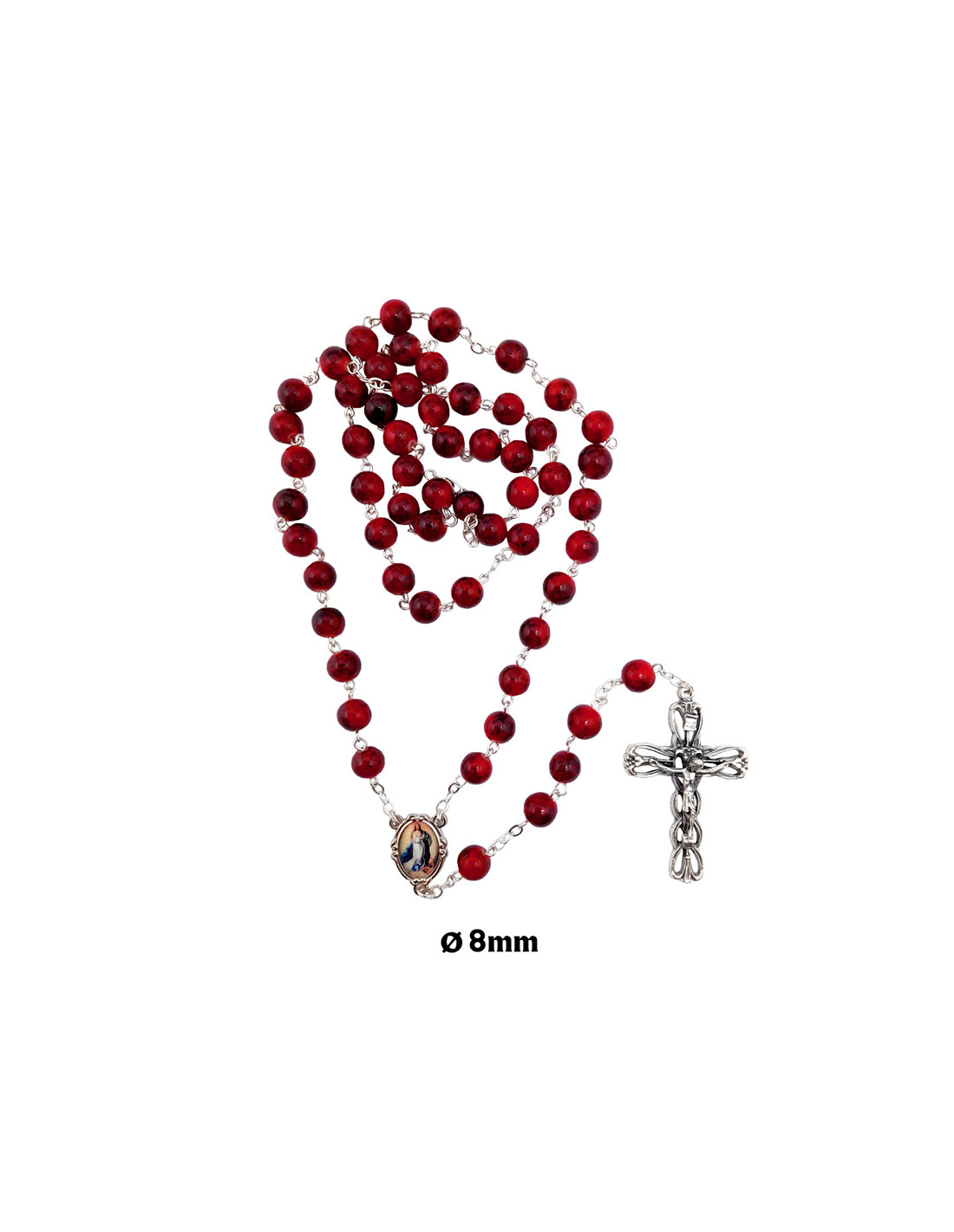 Rosario Cristal Liso 8Mm Estampado Rojo