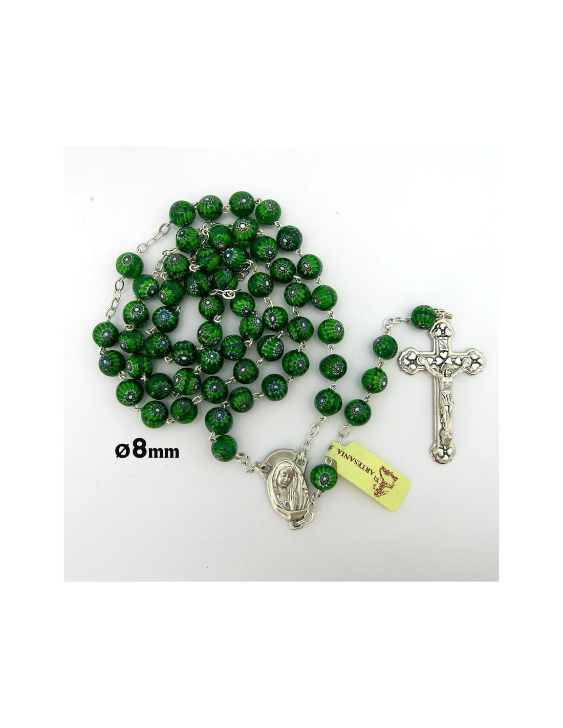 Rosario Cristal Murano 8Mm Flores Sobre Fondo Verde