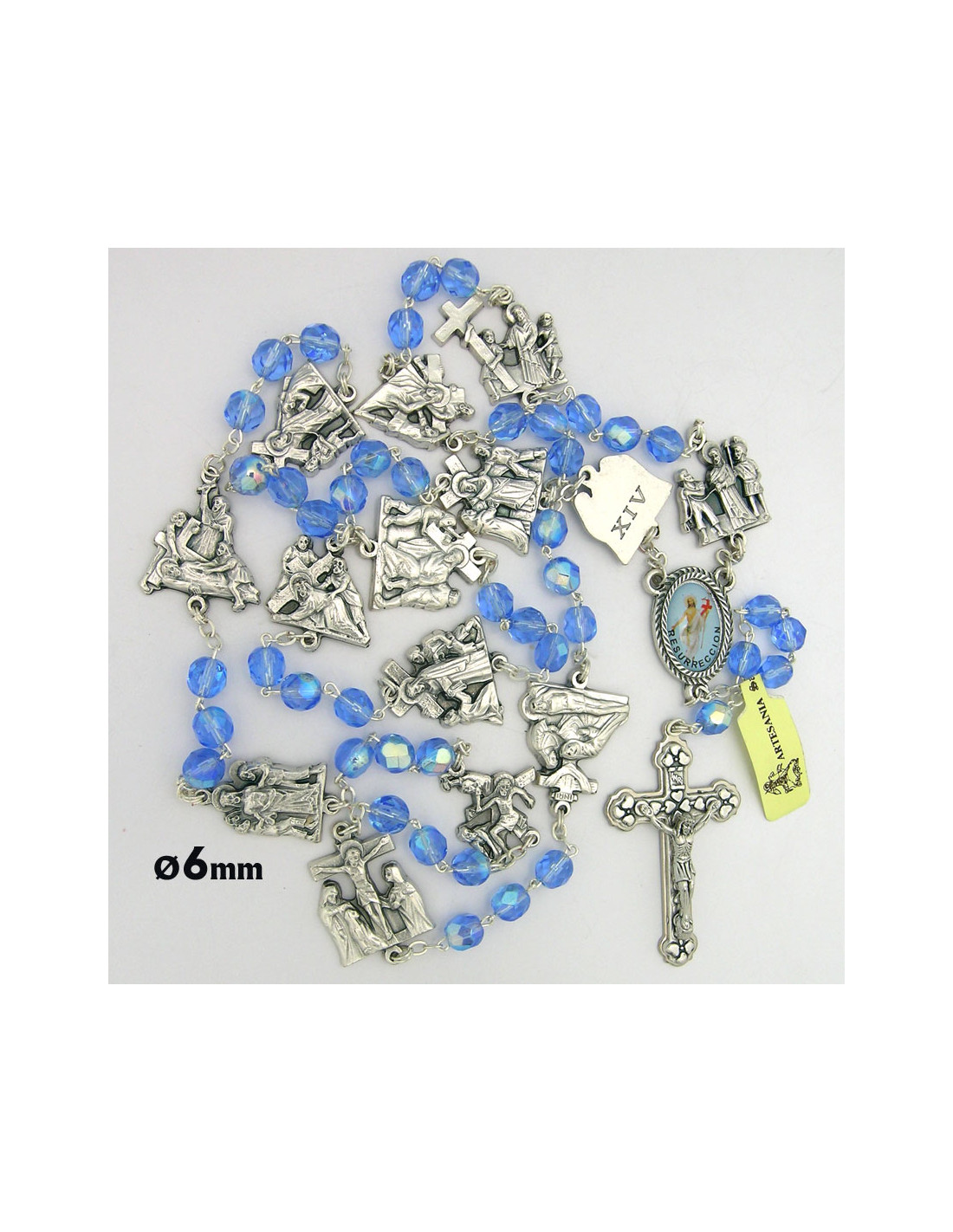Rosario Cristal Tallado 6Mm Azul Via Crucis Con Estaciones En Metal