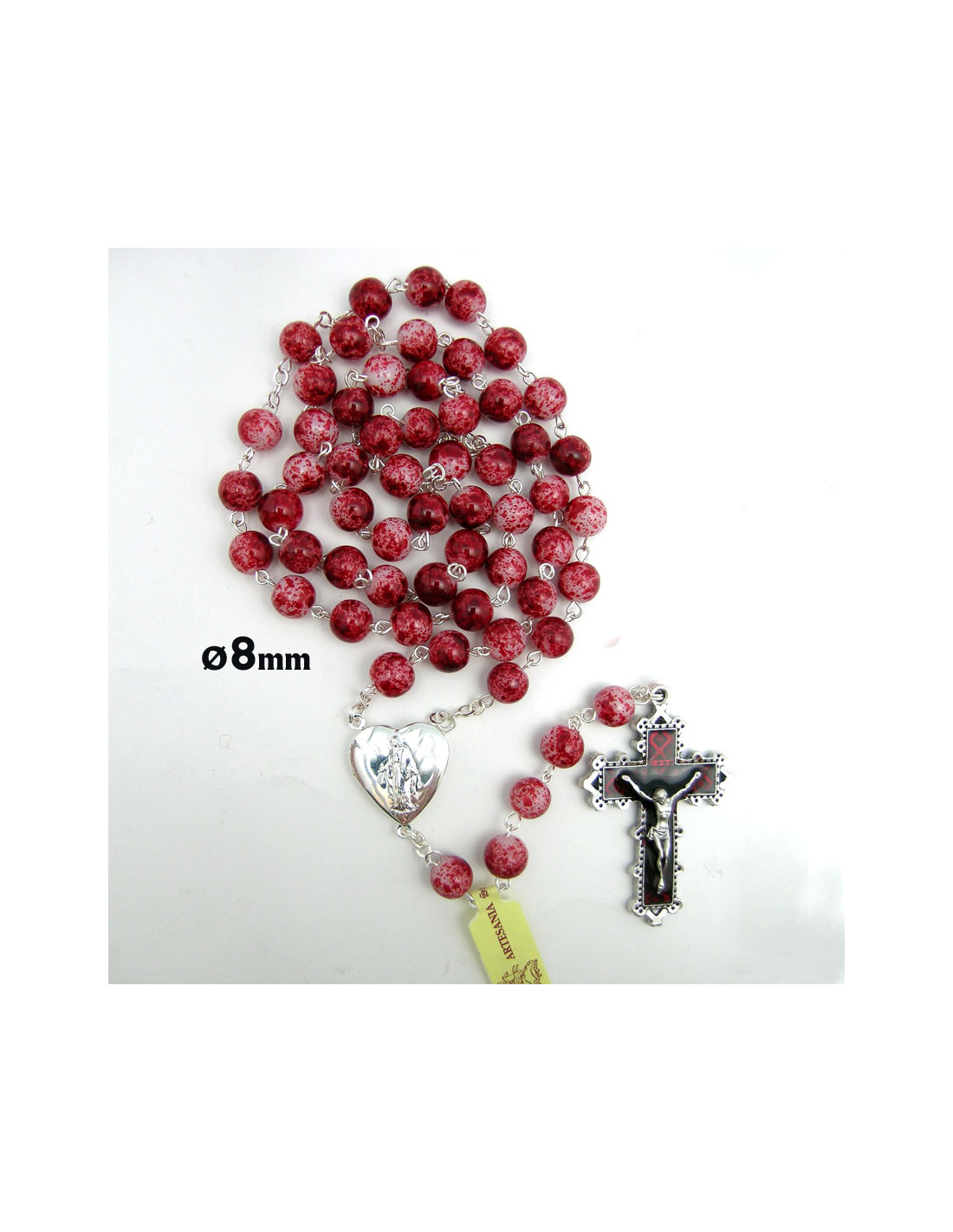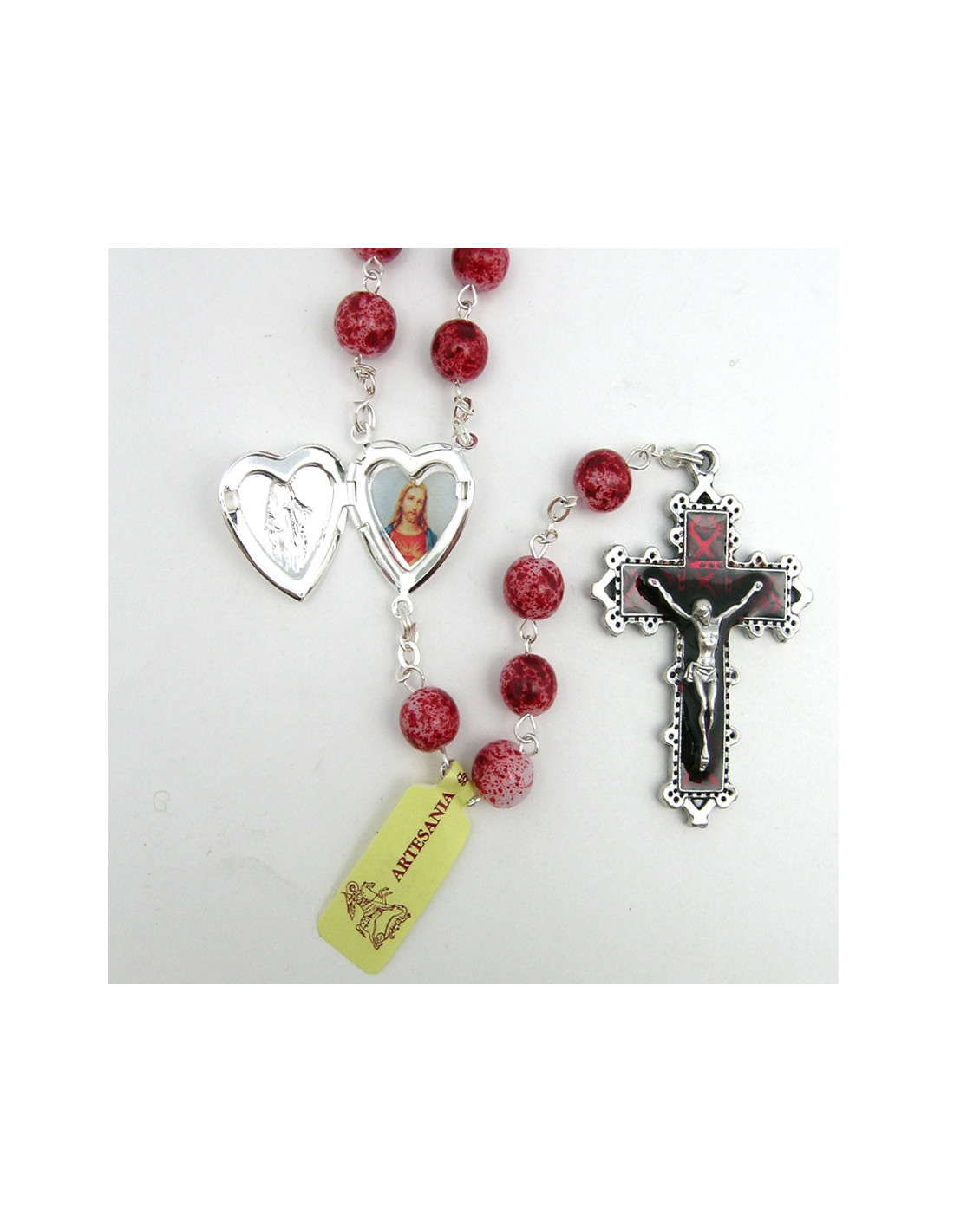 Rosario Cristal Liso 8mm Estampado Rojo Maria Corazon Personalizada Copetas
