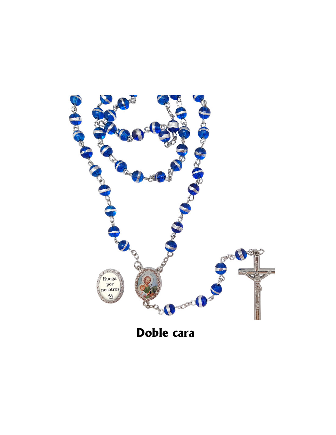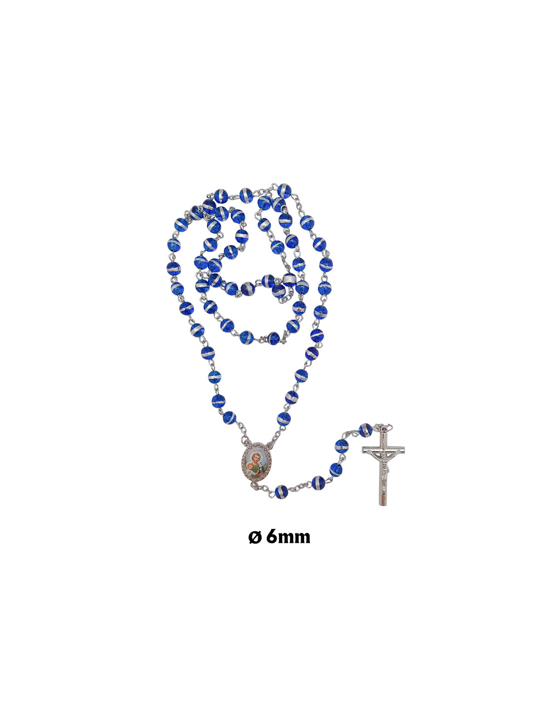 Rosario Cristal Liso 6Mm Azul Oscuro Con Anillo Central Plateado