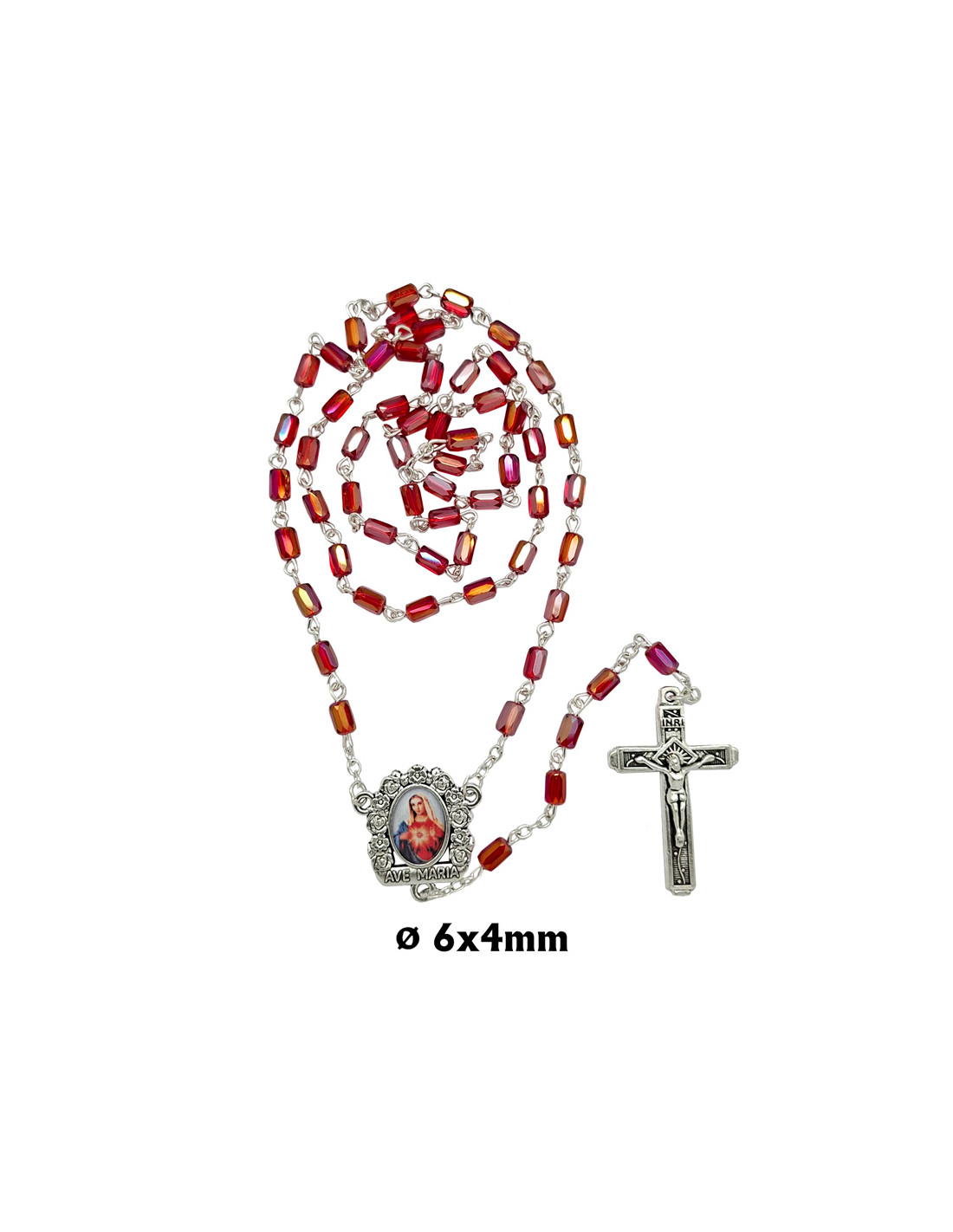 Rosario Cristal Tallado 6X4mm Rojo Tipo Barril Esquinas Cortadas
