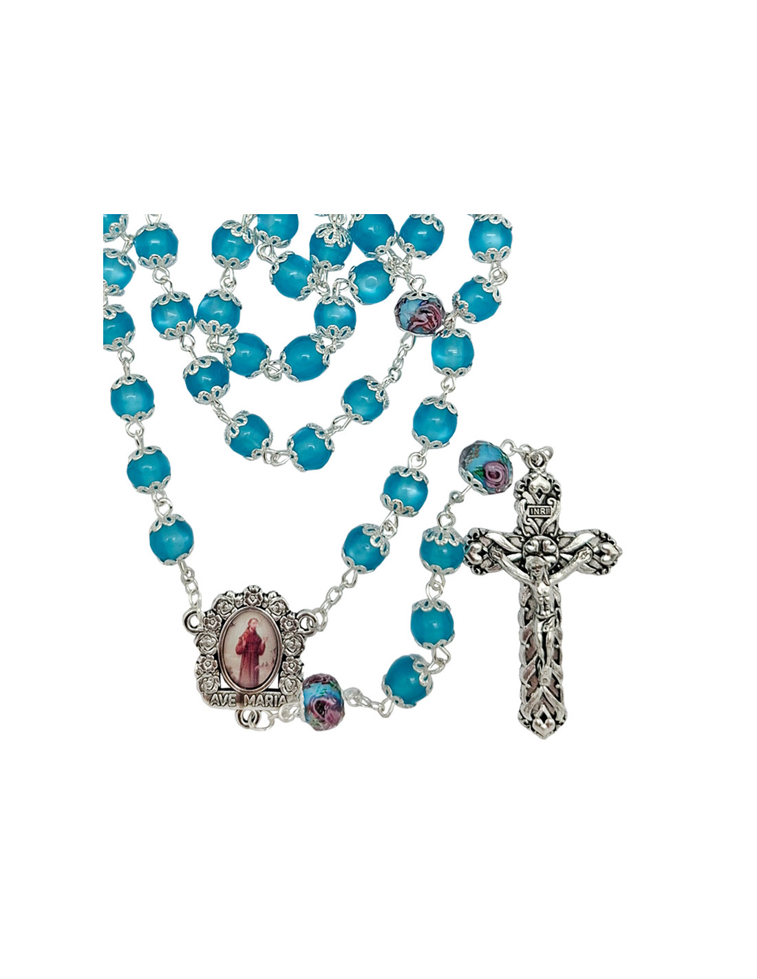 Rosario Resina Liso 8Mm Celeste Paters Cristal Con Rosa Interna Y Todo Copetas