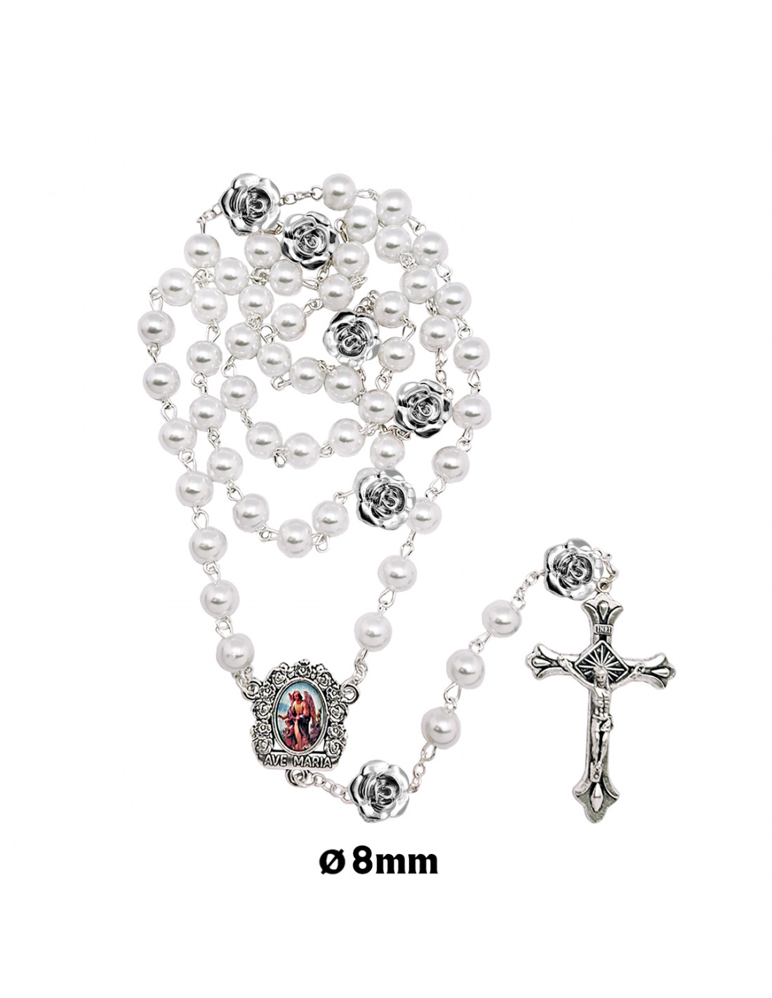 Rosario Cristal Liso Blanco 8Mm Con Paters Rosa 13Mm