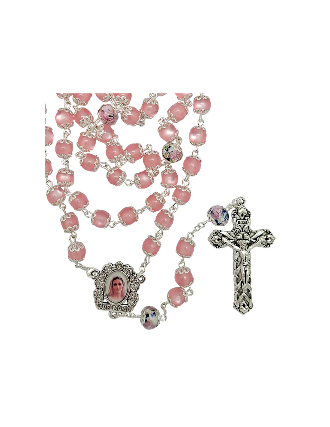 Rosario Resina Liso 8Mm Rosa Paters Cristal Con Rosa Interna Y Todo Copetas