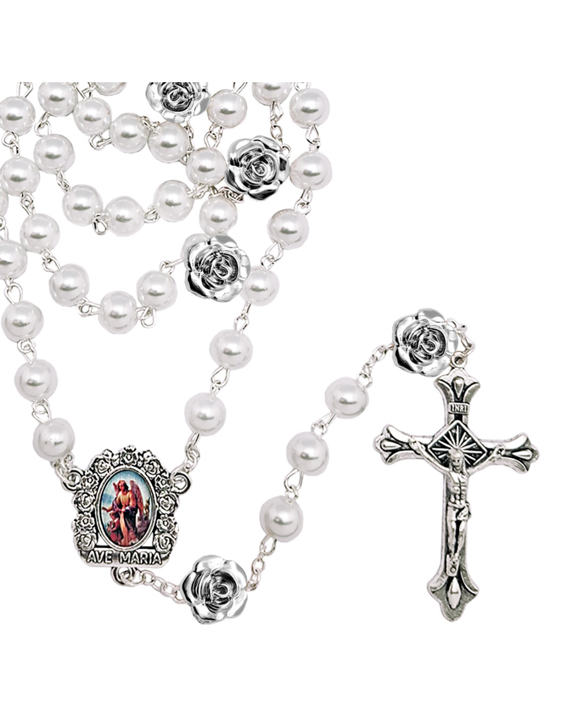 Rosario Cristal Liso Blanco 8Mm Con Paters Rosa 13Mm