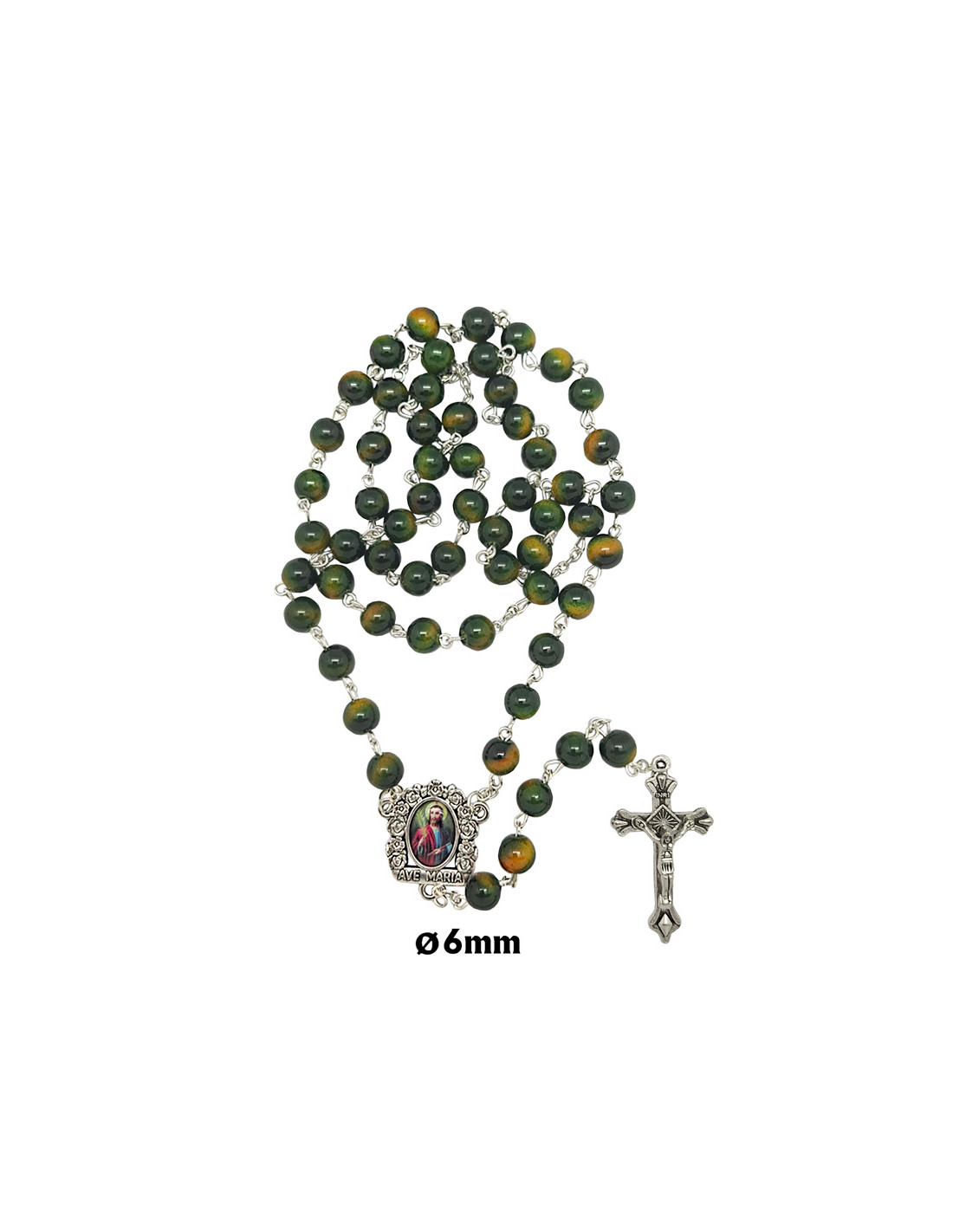 Rosario Cristal Liso 6Mm Verde Intenso Y Matices Dorados
