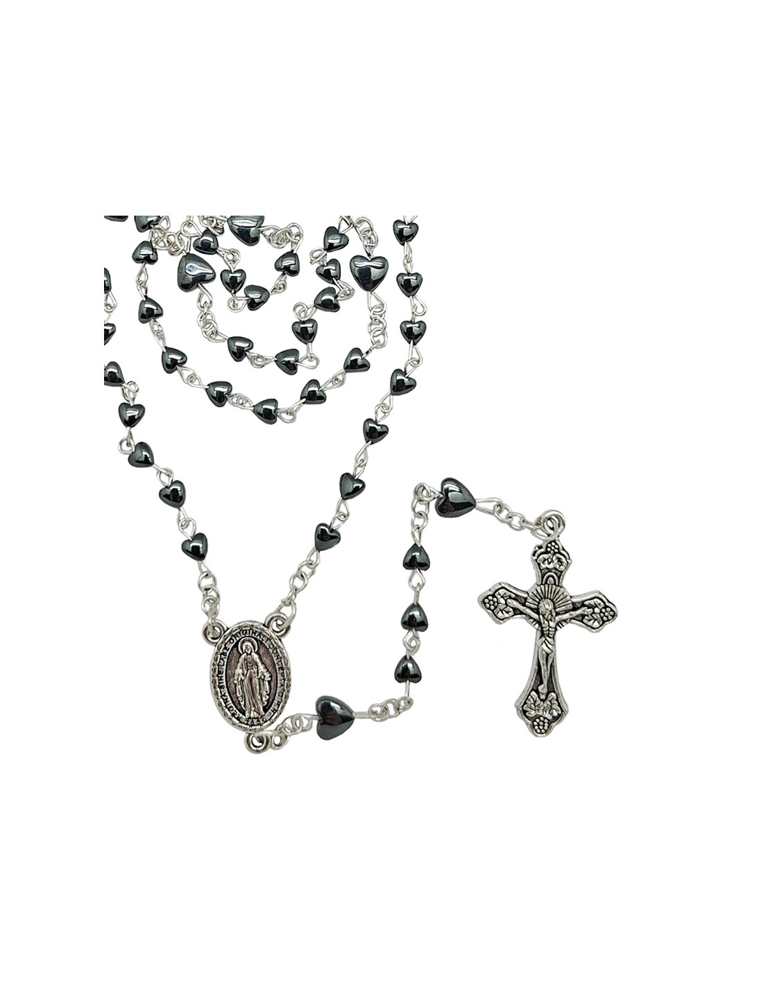 Rosario Hematita Corazones 4Mm Paters Corazon 6Mm Hematita