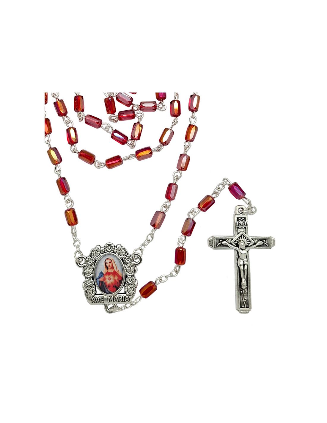 Rosario Cristal Tallado 6X4mm Rojo Tipo Barril Esquinas Cortadas