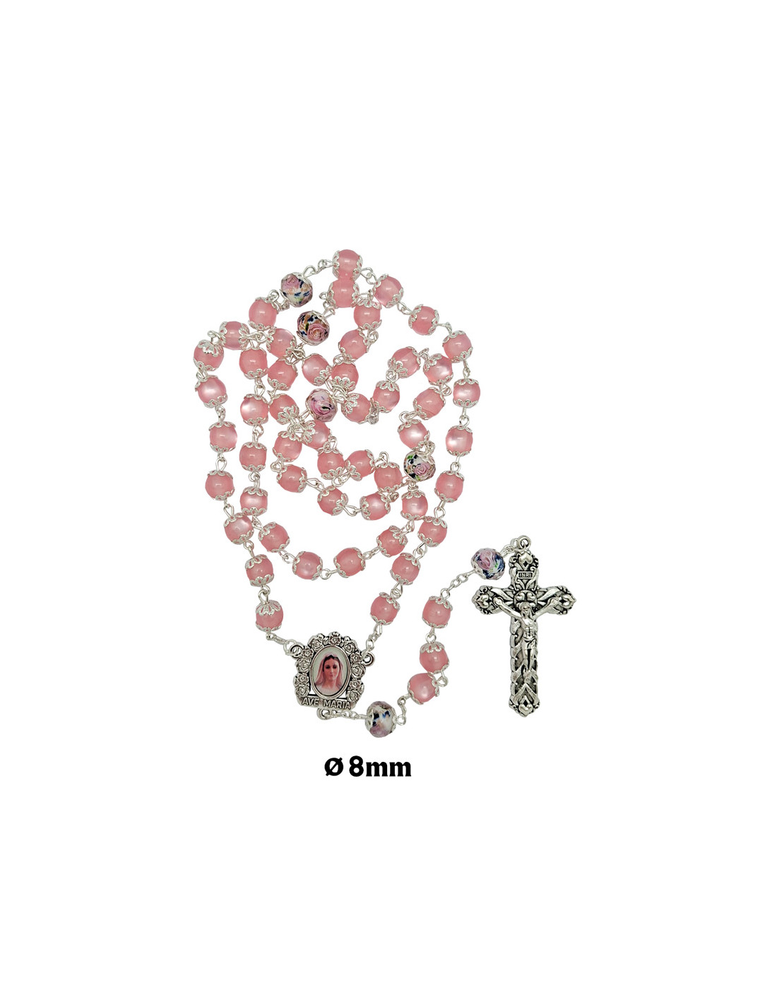 Rosario Resina Liso 8Mm Rosa Paters Cristal Con Rosa Interna Y Todo Copetas