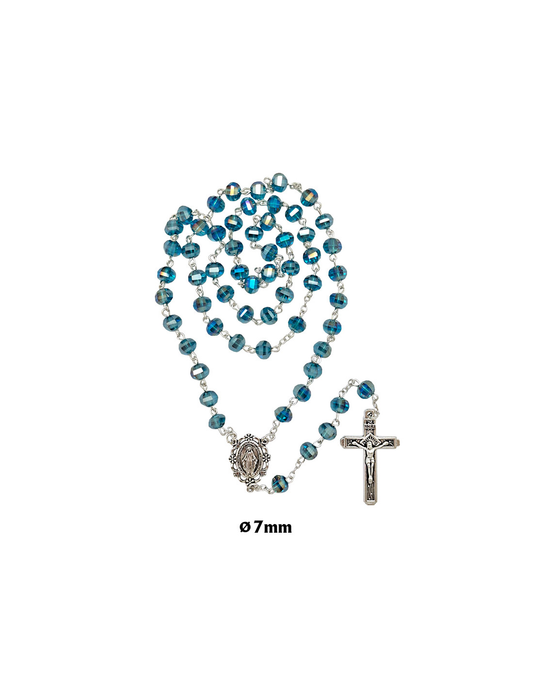 Rosario Cristal Tallado 6Mm Agua Marina Corte Irregular Laminado