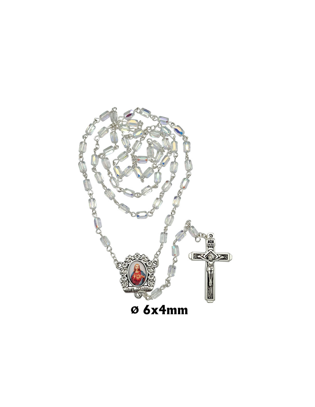 Rosario Cristal Tallado 6X4mm Trasparente Tipo Barril Esquinas Cortadas
