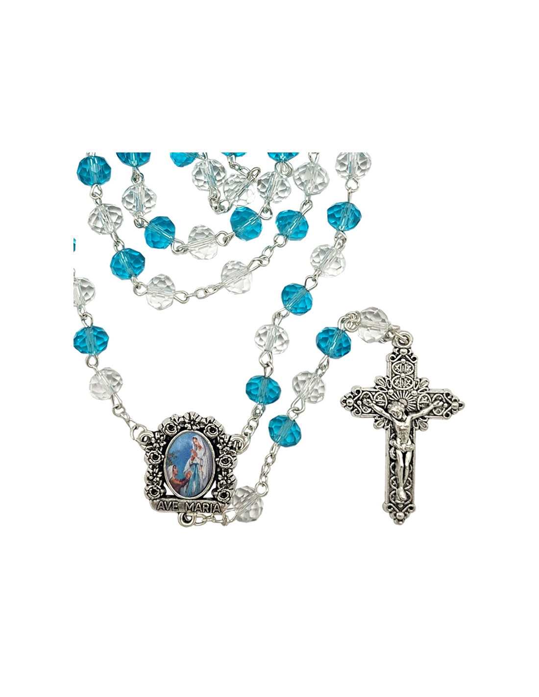 Rosario Cristal Oval 8X6mm Trasparente Y Celeste Alternos