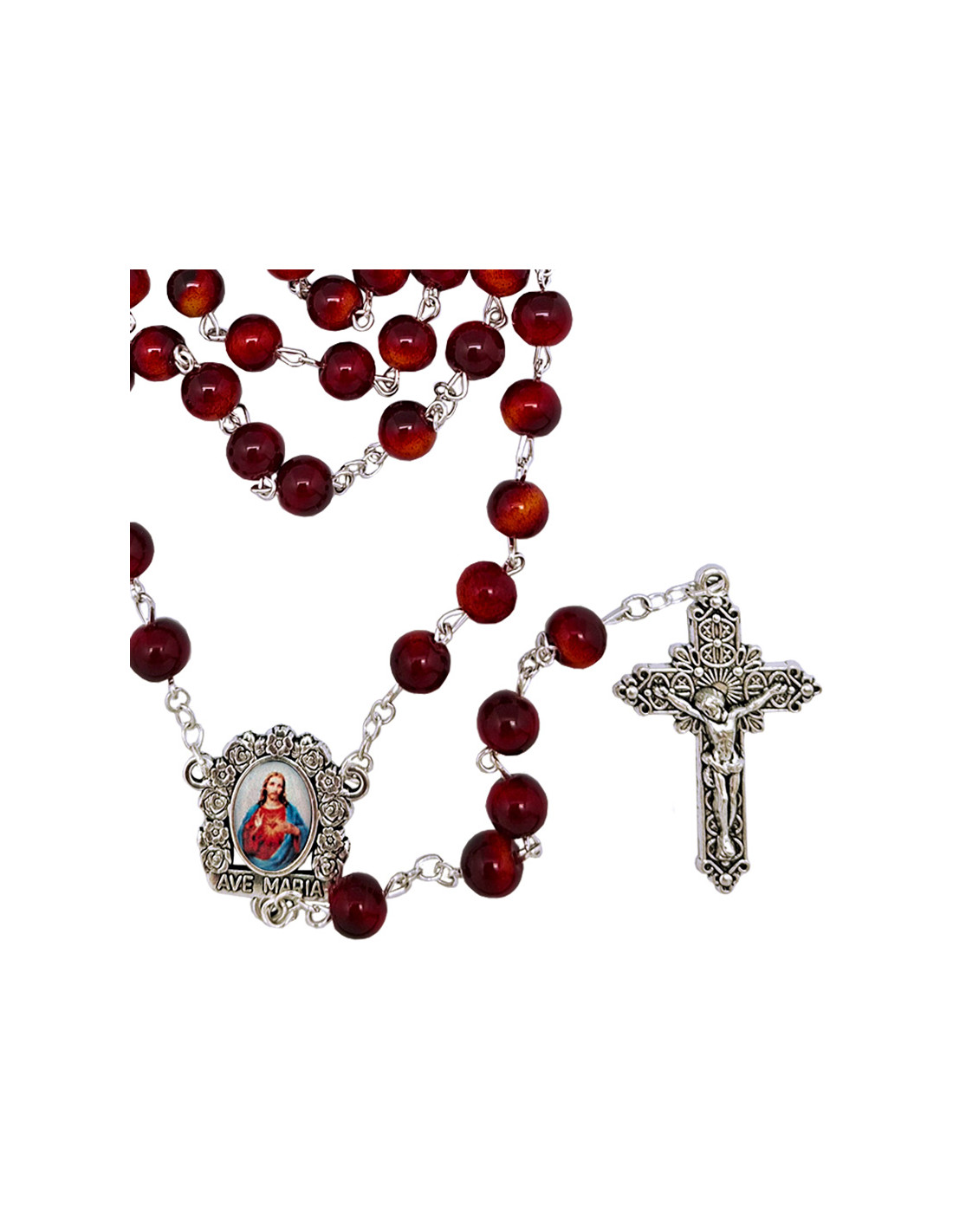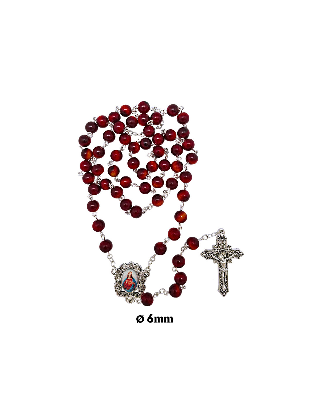 Rosario Cristal Liso 6Mm Rojo Intenso Y Matices Dorados