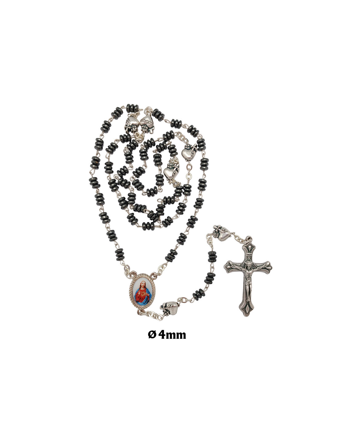Rosario Hematites Grano 3 Discos Paters Corazon Metal Con Puñal