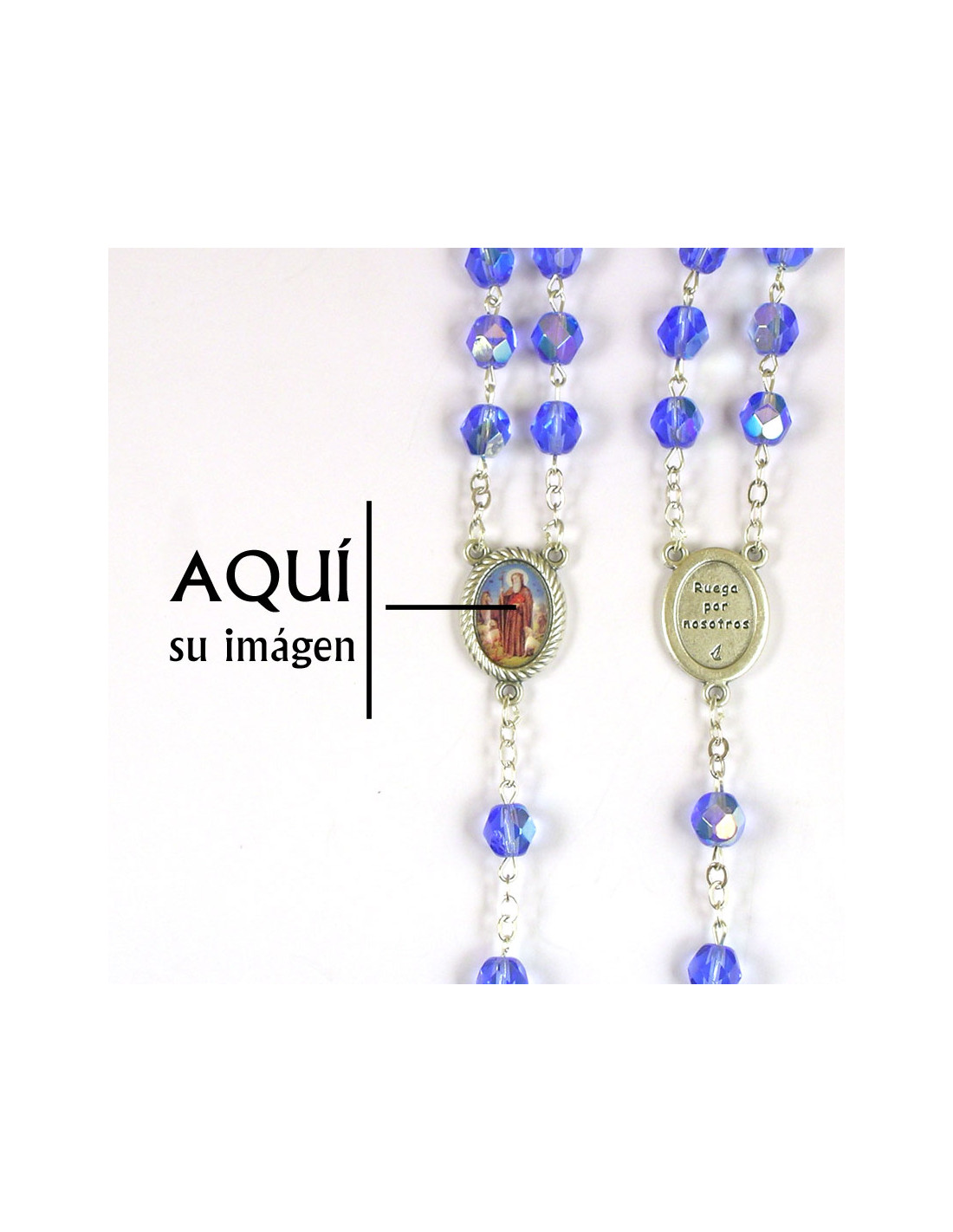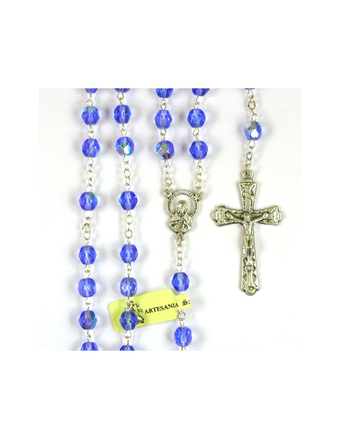 Rosario Cristal Virgen Milagrosa Tallado Azul 8Mm Paters Rosa Metal Maria A Colores